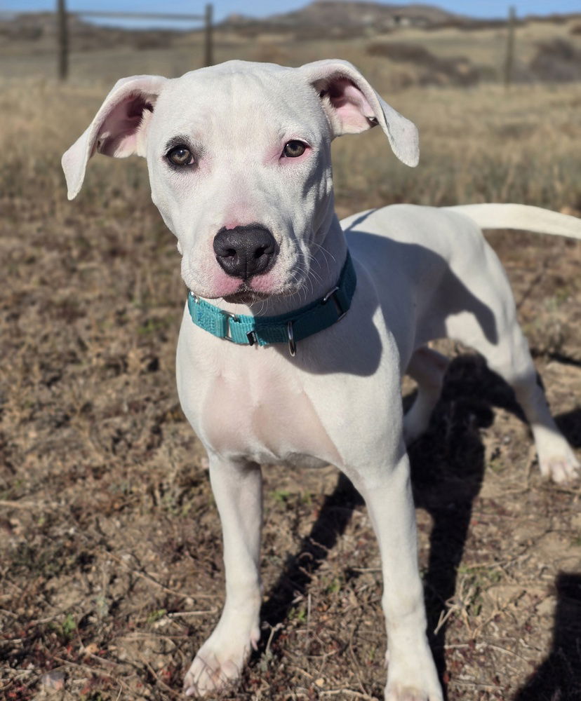 This pup was rescued from a high kill shelter in Texas.Meet and greets are by appointment only.  An approved application is required to schedule a meeting. Check out our events page for upcoming open adoption events!We have no additional back story or update for this dog at this time.  When we do, it will be updated here.  This is all the information we have currently. Approved Applicants may make the adoption fee payment by clicking donate above.  Partial adoption fees will not hold a dog. If upon meeting the dog of your choosing at your scheduled pickup time you find that you aren't a good match, your deposit will be fully refunded. Adoption fees include vaccines up until time of adoption, microchip, spay/neuter and 1st 30 days of free pet insurance.  We are not affiliated with MetLife pet insurance. (you have to sign up for the insurance or it will not go into effect).  Adoption fees help cover the medical care of the animals while he or she waits for a new home, as well as food and transportation costs. These fees help to provide care for the other animals in the shelter or rescue group who may have medical bills that are much higher than any possible adoption fee. The money also acts as a donation to help support the organization as a whole, allowing the group to continue its efforts to rescue and rehome pets. The dogs in our care are fostered in Colorado, Texas, and New Mexico.  While all dogs are picked up during our scheduled times, sometimes transport dates change due to unforeseen circumstances.   More questions?  Read our FAQs here: https://4p4l.org/faqs/  Breed labels are a "best guess" by a shelter veterinarian and cannot be guaranteed.