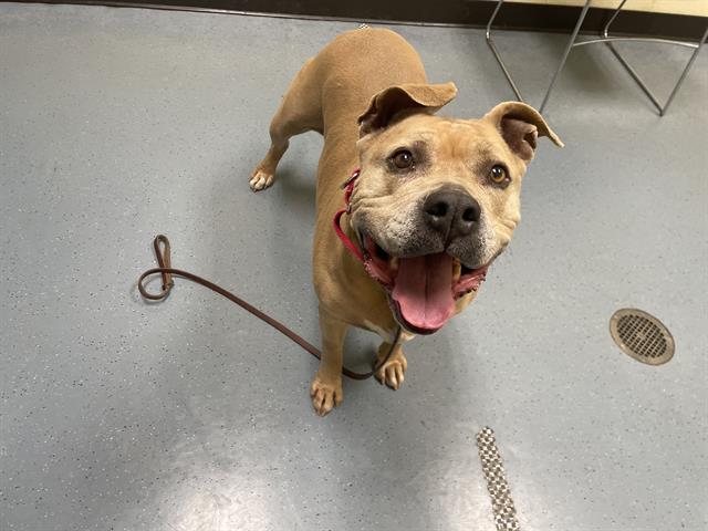 Meet Bella, an 8-year-old American Bulldog mix who is as sweet as she is gentle. Though she can be a bit shy at first, once Bella warms up to you, she becomes a loving, affectionate companion. She’s a big girl, but don’t let that fool you—she’ll happily try to crawl into your lap for cuddles once she trusts you! Due to her shy nature, Bella would do best in a home with older children who go slow with her. Bella is looking for a patient, loving home where she can take her time settling in and build a strong bond with her new family. If you’re ready to give Bella the time and space she needs, she’ll reward you with endless love and loyalty.What I Need In a Home:* Older children recommended