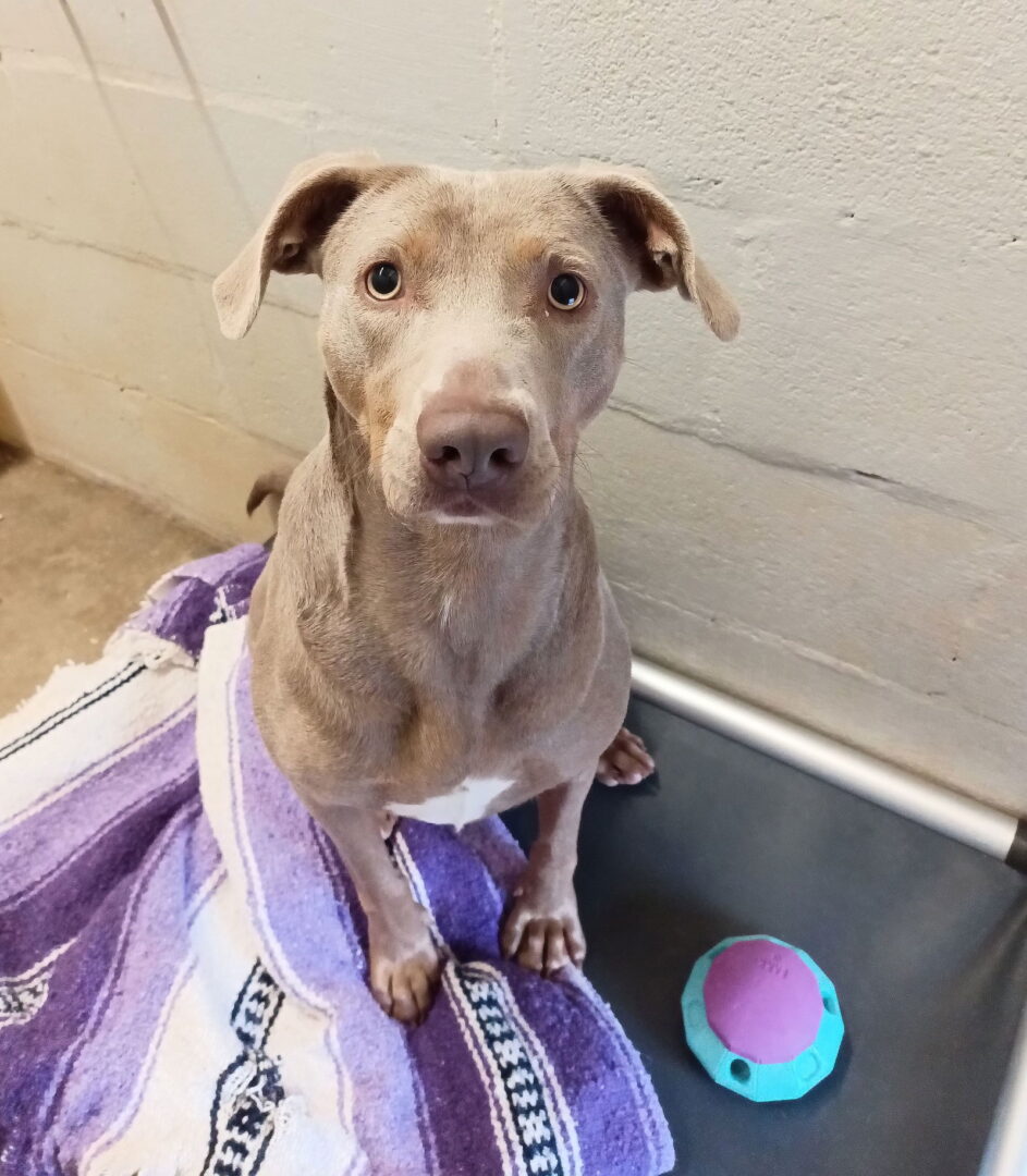 Belle is a sweet and affectionate young dog. We think she might be about a year old. She gets along with the other dogs in her playgroups and adores people – adults and children. Belle is spayed, tested negative for heartworms, fully vaccinated, and up to date on flea/tick and heartworm preventative. She is ready to meet her forever human!