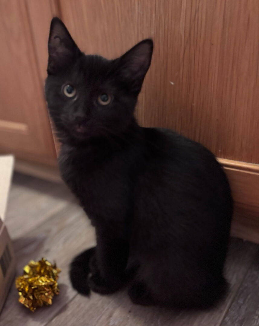 Introducing ‘Belle’- this gorgeous girl was named from the movie ‘A Christmas Carol’ as she will surely make your heart sing! Belle is a beautiful, sleek all black kitten that is living her best life with her littermates. She loves to snuggle and purrs when to we talk to her. Belle has not been around young children not dogs. Sisters Tinsel, Belle and Blinkie and mom Avondale were playing with their foster family. They are new arrivals to our Chrisitana PetSmart adoption center. Please stop in for a visit! Please submit our no-obligation Adoption Application for a meet and greet or to adopt: https://forgottencats.org/adoption-application/. Thank you! (Foster: Staci B.)