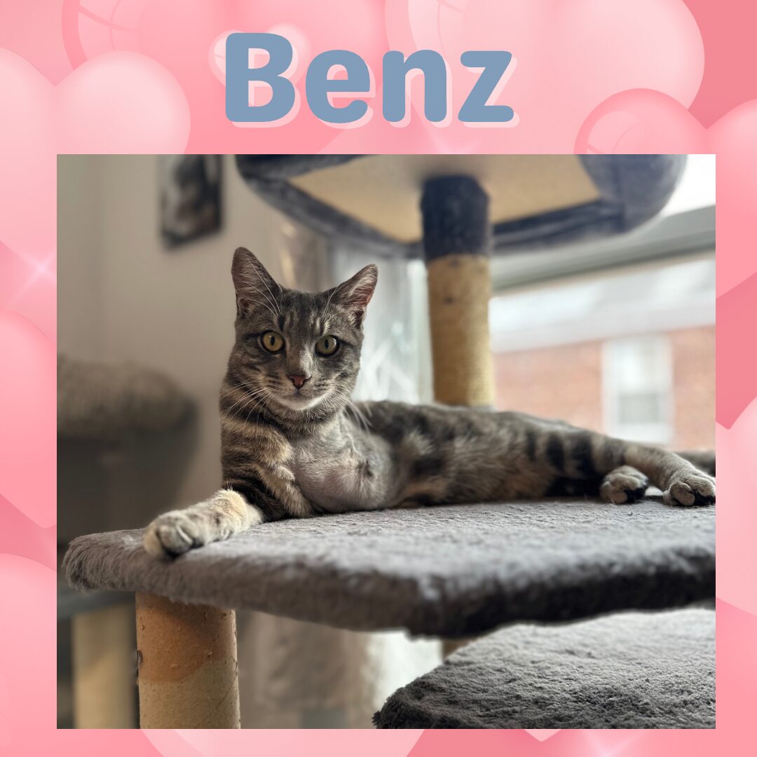 Your heart will melt when you meet Benz our special, resilient , happy go lucky tripod kitten. Benz is truly special , he’s happy all the time , loves every person and animal he meets , never a hiss. You wouldn’t believe all he’s been through by meeting him because he has the absolute sweetest disposition. Having only 3 legs doesn’t stop this boy from living his best life ! He runs up and down stairs, climbs cat trees, and runs down the hallway chasing laser pointers and wands toys ! He can even “bunny kick” toys with 3 legs , and play wrestle with other cats! He’s truly remarkable and doesn’t know anything is different! How did he end up with 3 legs you ask? we rescued Benz when he was found with an awful injury to his left paw and lower leg. It was so sad and must have been so painful . We took him to the best specialists (Guardian Veterinary Specialists and Animal Medical Center) . Both specialists recommended Benz have his leg amputated. Any slim chance at healing would have been long, and painful. We didn’t want to see Benz in pain any longer than was necessary, and made the decision to amputate. To our amazement , Benz stood up (literally) to the challenge and was back up on his feet only a couple days later acting like the playful , purring kitten he is. We have noticed carpets and rugs seem to be easier for him to get traction on , so it’s a plus if you have some carpeting /rugs to he can be confident when he’s happily playing and running around . Benz is now healthy , neutered , vaccinated , and tested negative for FIV and FELV! Benz would love to have a kitty playmate in the home so please inquire either if you already have a playful cat looking for a friend , or , want to adopt two! (We can pair him up!) To apply to adopt this special boy, email nycatcoal@yahoo.com or call Joan at (718) 671-1695