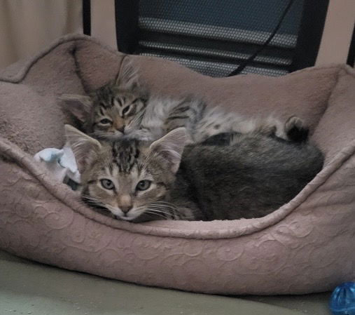 10/7/25 Lisa Palasits found two male kittens in the driveway – Bernard and Monty. They are in foster with Lisa.