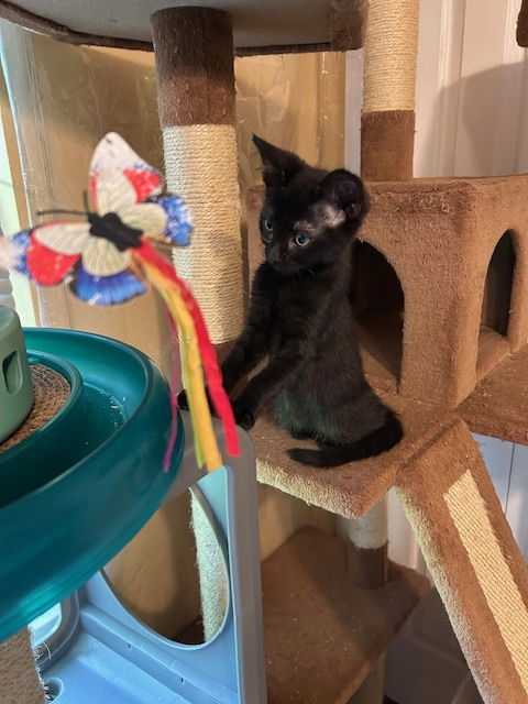 See Bernie’s HomepageGo to our official websitePlease contact Beth (Ottoba418@gmail.com) for more information about this pet.This adorable all black little boy has 2 speeds: High energy, let's have fun! and Let me snuggle with you and snooze. He is so much fun! Bernie loves to play with his little"sister" and the other foster kitties in the home. He's very social and hasn't met a kitty or human he hasn't liked. Of course, he is litter box trained like a big boy. He is now looking for his forever home (and would love to have a companion to play with – dog or cat). Adoption is $50 and includes his neuter surgery, initial vaccines, rabies and microchip. We also offer BOGO as 2 kittens are 2x the fun and 1/2 the trouble. Meet one of the other fosters when you come to meet Bernie and it may be just the thing. To meet Bernie, please email foster mom at ottoba418@gmail.com and please share a little about yourself and where/with whom he would be living so we can make the purrfect fit.