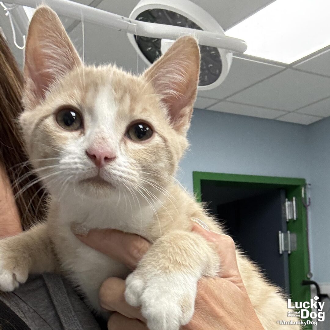 Please contact Mollie Gorney (mollieg@luckydoganimalrescue.org) for more information about this pet.Handsome Bert is looking for his forever home!BERT NEEDS A FOSTER OR FOREVER HOME! Name: Bert Best Guess for Breed: Domestic Short Hair Age: 16 weeks as of 12/4/24 (Est. DOB: 8/13/24) SEX: Male Approximate Weight: 4.75 lbs as of 12/4/24 Coloring: Orange and White Type of Hair: Short Gets Along With: Because of his young age, Bert will likely get along with other cats, dogs and kids with an acclimation period. We’re happy to help with tips and tricks! Litter: Bert, Ernest Currently Living at: Shelter – coming to the DC area soon I am Looking For: My loving forever family! Hi! I’m Bert, and I am a cute little kitten! I won’t ask for much- just some love, cuddles and lots of toys so I can run and play and be my kitten self. Two kittens are more fun than one and I’d love to be adopted with my brother, Ernest! What My Foster Says About Me: Coming soon! Kitten Vetting Requirements: Your kitten may not be fully vaccinated upon adoption. You will be responsible for providing whatever remaining vaccines are needed to complete the kitten vaccine series. TO ADOPT: The adoption fee for adult cats is $200 ($350 for two cats adopted together). The adoption fee for a kitten (under 7 months old) is $220 ($380 for two kittens adopted together).If you are interested in adopting, please complete the Adoption Questionnaire online at bit.ly/adoptaluckycat. Lucky Dog Animal Rescue does our best to provide accurate information about the cats we have for adoption. That said, we cannot make any guarantees about age, breed or temperament. Thank you for contacting Lucky Dog Animal Rescue and helping to save a life! Please visit us online at www.luckydoganimalrescue.org . BE A FOSTER!!! Fosters make it possible for Lucky Dog Animal Rescue to save and care for homeless and abandoned dogs! To learn about fostering, please contact fostering@luckydoganimalrescue.org BE A SPONSOR!!!! Sponsors help Lucky Dog support the many dogs we save. To learn more about sponsorship, please contact info@luckydoganimalrescue.org !
