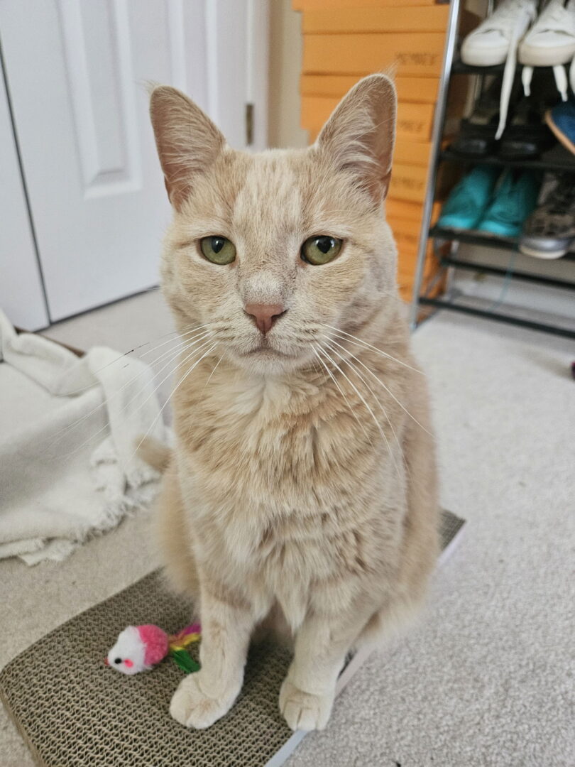 Beautiful Bertha is a buff ginger tabby with a plush coat and soulful green eyes. She loves affection and cuddling! She will nudge you with her head and put her paws on you to let you know that she wants to you to keep petting her. She will roll on the ground and show you her belly while making air biscuits, but she'd prefer for you to only rub her chest. She enjoys cardboard scratchers and playing with track ball toys. She likes being brushed and will let you clip her nails if you give her treats. Bertha will be your devoted companion. She always wants to be with you or near you. She will climb on you and follow you around. If you leave, she will be waiting for you by the door. Bertha is very quiet, with a low purr and occasional little squeaks. She let out only one tiny meow on the hour-long car ride to her foster home. Bertha is a calm and gentle cat. A quiet home would be best for her. Bertha was brought to a shelter as a stray, so nothing is known about her life before that. She is adapting wonderfully to the spoiled house cat life. Bertha did not react to seeing the resident cat in her foster home so she would likely get along well with other cats given a slow, proper introduction. Her finder noted she did well around their dog. Bertha has hyperthyroidism, which is easily managed by a pill that she eats in her food. Bertha is ready to go home with you and be your best friend! Adoption fee: $100, includes all shots, sterilized, dewormed, deflea, microchip If you are interested in adopting, please fill out an application and a representative will get back to you shortly to answer any questions you may have. The adoption policies and applications can be found at the following links: https://fancycats.org/adopt-a-cat and https://fancycats.org/adopt-a-dog. Email us at adoption@fancycats.org for general questions about our rescued cats. Email us at dogadoptions@fancycats.org for general questions about our rescued dogs. See our calendar of adoption events at https://fancycats.org/(scroll towards bottom) You can save animals like this one by becoming a foster! Fosters are like bridges between high kill shelters and forever homes. We need fosters so that we can save cats and dogs before they are euthanized at the shelters. If you are interested in becoming a foster, please visit: https://fancycats.org/volunteer