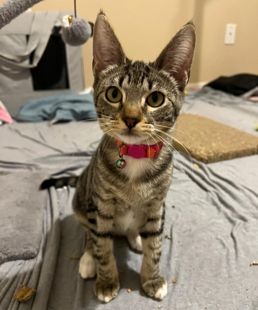 Approximate date of birth: 4/6/2025 | Beth is the only girl in her litter of eight, and she makes sure everyone knows she’s the queen! She’s full of energy, loves to play, and has incredible hunting instincts… chasing toys, leaping high, and zipping around like lightning. Beth is still a little nervous around people, but with love and patience, she’ll warm up quickly. She thrives with other cats (especially her brother Gingi!) and does well with respectful kids and even small dogs. If you’re looking for a fun, spunky, playful kitten to brighten your home, Beth is your girl! | Loves cats and requires a feline companion if home alone for long periods of time | Likes dogs with proper introduction | Good with kids of all ages | Health information: All cats and kittens are spayed and neutered, preventatively dewormed, and microchipped. In addition, they are FeLV/FIV tested and vaccinated as appropriate by age. | Interested in adopting? Apply to meet and adopt. | How to apply: please fill out application at https://www.savingonelife.org/adopt/apply/