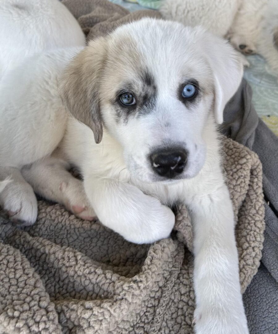 See Betty’s HomepageGo to our official websiteYou can fill out an adoption application online on our official website.Meet BETTY! Betty is an adorable Pyrenees puppy who is about 3 months old. She was found dumped in a feed sack with her 3 siblings when they were about 5 weeks old. Betty is learning all things puppy, loves to play and loves people! She will need a home with another adult dog to help show him the ropes. Betty is currently in Texas but can be transported to the PNW. OUR REQUIREMENTS FOR PUPPY ADOPTION: 1) PUPPIES WILL ONLY BE PLACED IN HOMES THAT HAVE AT LEAST ONE MEDIUM TO LARGE YOUTHFUL, PLAYFUL RESIDENT DOG that is age 1 or older. This helps integrate the dog into your household easier by giving the pup a mentor. 2) These puppies can be livestock dogs to farms and homesteads experienced in training LGDs. They also must be family pets that are allowed inside the home. 3) In addition to the youthful playful dog, someone must also be home at least part of the day. Please do not apply for a puppy if you are gone 8+ hours a day. 4) We give preference to applicants with prior Great Pyrenees knowledge/experience. 5) Secure and visible fencing required. 6) You must have a plan in place to socialize your puppy properly. Adoption Fee: $375 All of our puppies are spayed/neutered, microchipped and up to date on age appropriate vaccinations. We do not adopt to families with children under the age of 6. Transport Fee: $350 Transport fee includes the cost of transport plus the Health Certificate required for USDA approved transport. All of our puppies are spayed/neutered and up to date on vaccinations. Adoption applications can be found on our website: www.greatpyrsandpaws.org https://greatpyrsandpaws.rescuegroups.org/forms/form?formid=5959 Northwest adopter pays cost of transport to independent transport company. Transport is arranged by GPPR.