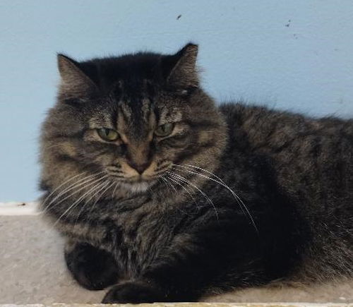 Bev is a beautiful small female long-haired brown tabby with a beautiful fluffy tail. She is available in our Cat Room at our Center at 571 NE44TH ST.(NW CORNER OF PROSPECT (44TH AND 6TH) IN OAKLAND PARK, FL. We encourage you to file an on line application for this or any of our pets by clicking HERE or by going to www.animal-aid.com for a Pet Adoption Application . Please include the name of the cat(s) or kitten(s). Stop by anytime when we're open. Please visit our web site at www.animal-aid.com to see the hours for our Adoption Center located at 571 NE44th St. (NW corner of Prospect (44 th and 6 th ) in Oakland Park, FL 33334 and our pets available for adoption. Many of our cats are shown 7 days a week at the Petsmart at 12051 Sunrise in Plantation. The donation we are requesting is $60 and includes our medical program; all vaccines, rabies vaccine, fecal exam, de-worming, blood test for AIDS and Leukemia, spay or neuter, first month Advantage (flea treatment) plus a coupon for Science Diet food.