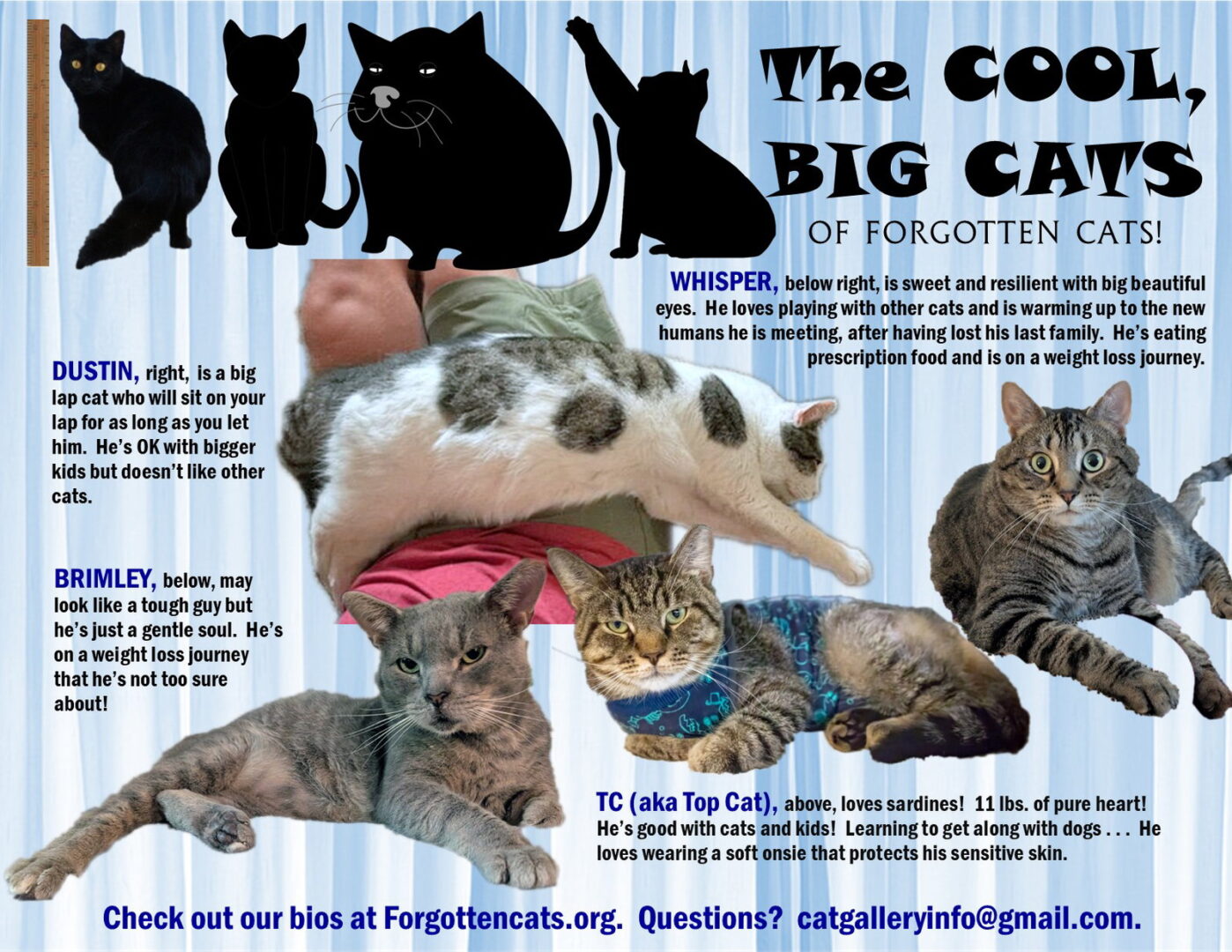 Are you interested in a BIG cat? We have a number of BIG cats weighing 11 pounds and more. Please submit our no-obligation Adoption Application at: https://forgottencats.org/adoption-application/. Not ready to adopt? Please consider fostering: https://forgottencats.org/foster-a-cat/. Thank you! (Foster: Various Fosters, Trainer and Willow Grove clinic/shelters)
