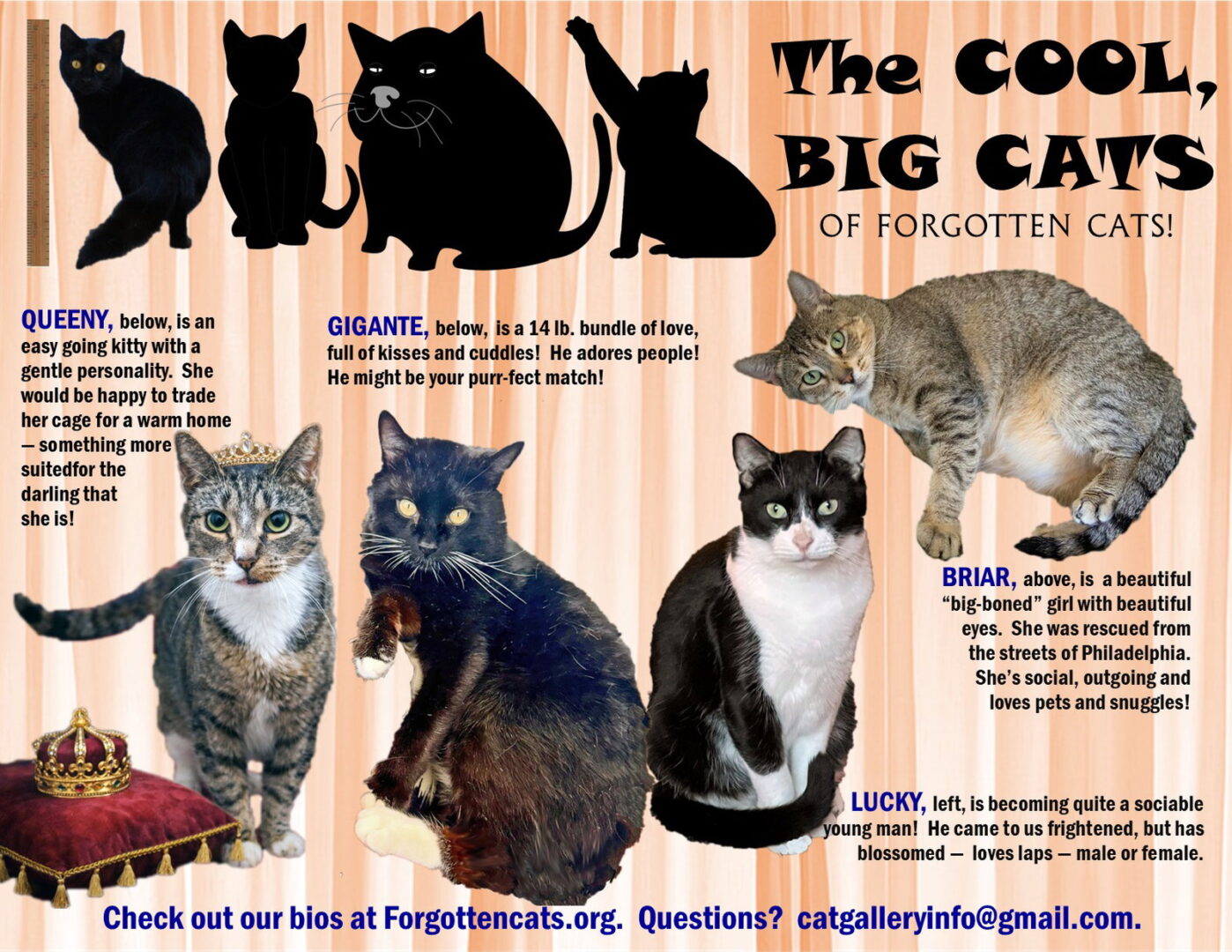 Are you interested in a BIG cat?  We have a number of BIG cats weighing 11 pounds and more.  Please submit our no-obligation Adoption Application at:  https://forgottencats.org/adoption-application/.  Not ready to adopt?  Please consider fostering:  https://forgottencats.org/foster-a-cat/.   Thank you!  (Foster:  Various Fosters, Trainer and Willow Grove clinic/shelters)