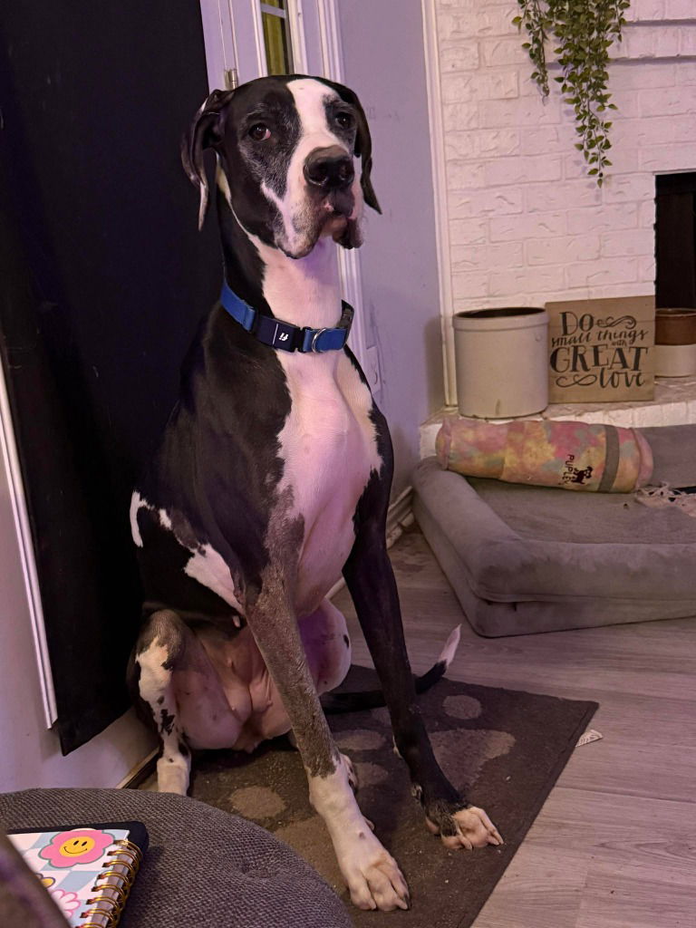 Location: Arlington, TX (needs adopter within 2-3 hours of DFW)DOB: 7/27/2022Meet Billie, our sweet Harlequin Great Dane, a gentle girl with a small frame and a big heart. She’s well-mannered, quiet, and loves being part of the family. She listens very well and responds nicely to guidance, making her an easy companion in the home.She is fully house trained and crate trained, and she settles calmly in her crate when needed. Around the house, she’s generally relaxed and enjoys a peaceful environment. She loves a good cozy bed, but her favorite spot is beside her human!When meeting new people, she may bark at first as she gets used to someone new, but once she realizes you’re a friend, she warms up quickly and shows her affectionate side. With a little patience during introductions, her sweet and loyal personality really shines.She would do well in a home that appreciates a calm, well-behaved companion and is looking for a loving Great Dane with excellent house manners. https://forms.gle/G2dJx2NV4JXZcZ9F6Thank you for considering rescue! If you are interested please apply. Foster/Adoption Application: https://forms.gle/G2dJx2NV4JXZcZ9F6