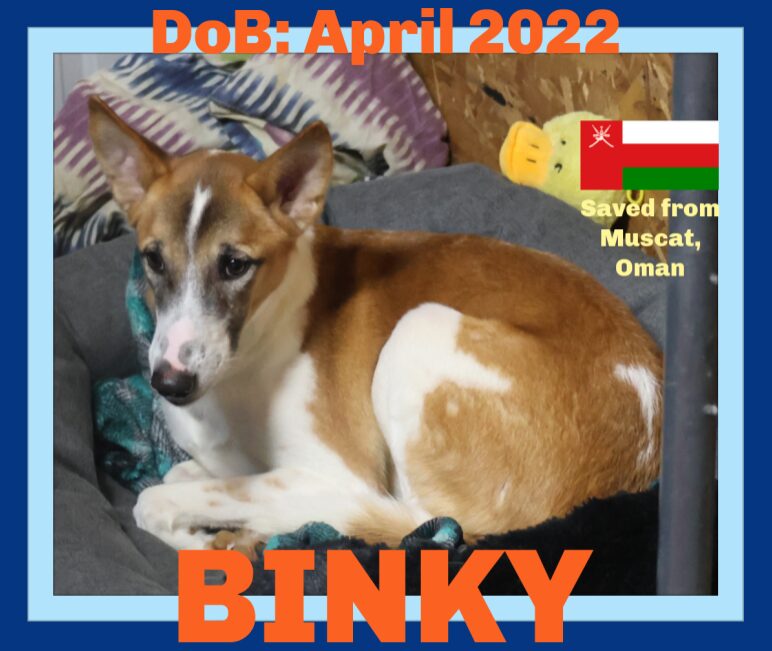 See BINKY’s HomepageGo to our official websiteYou can fill out an adoption application online on our official website. BINKY was saved and cared for by Muscat Dog Adoption, before sending him with other saved dogs to Give a Dog a Home Rescue in Sebec, Maine. They arrived in the US on 28th January 2025 and were transported to the rescue where they are settling in. BINKY was cleared by the US canine center for diseases upon entry into the US. He is neutered, rabies, core vaccines, heartworm and tick tested negative, is on monthly preventatives, microchipped, weighs around 43 pounds and has an estimated date of birth or 7 April 2022. BINKY's story is that he was rescued in June 2023 with his mum, Geyran who came to the US at the same time as him. Binky was born on the streets and with his mum and siblings lived as a happy and friendly neighbourhood dog for about one year until they were all targeted and shot. Binky & his mum survived, sadly his siblings did not. Binky was shot in the throat, and genital area. Luckily the wounds were superficial but the bullet in his throat was not removed because it was lodged in so deeply. Binky and mum Geyran were taken to a wonderful Omani lady who cared for them until they were lucky enough to come to the US. They spent most of the time in large crates where they could stretch and stand up and were taken out to do their business and short walks. Twice a week volunteers would go and take all the dogs out on longer walks. Stray dogs in Oman are referred to as "Wadi Dogs" and are a mix of the popular sighthound breeds, specifically thought to be descendents of the majestic Saluki and other smaller breeds, many resembling whippets with their small agile frames. If not saved these dogs are often shot or brutally ran over and left for dead. We are looking for families that have the lifestyle that the dog needs to lead a healthy, both mentally and physically life, who can afford a GOOD quality food, toys and treats and understand the importance of veterinary wellness checks. BINKY is available for adoption for an adoption fee of $550, as noted he is located at the rescue in Sebec, Maine and families are required to complete and submit an adoption application and when approved schedule an appointment to come to the rescue to meet and hopefully take home this sweet boy. Applications are processed with 24 hours of them being received. Link to the Adoption Application To look at lots more photo's be sure to check out our Facebook Page ALBUMS where we are able to upload hundreds of photos of our dogs waiting for their forever homes and families. Click here to watch a video of BINKY.