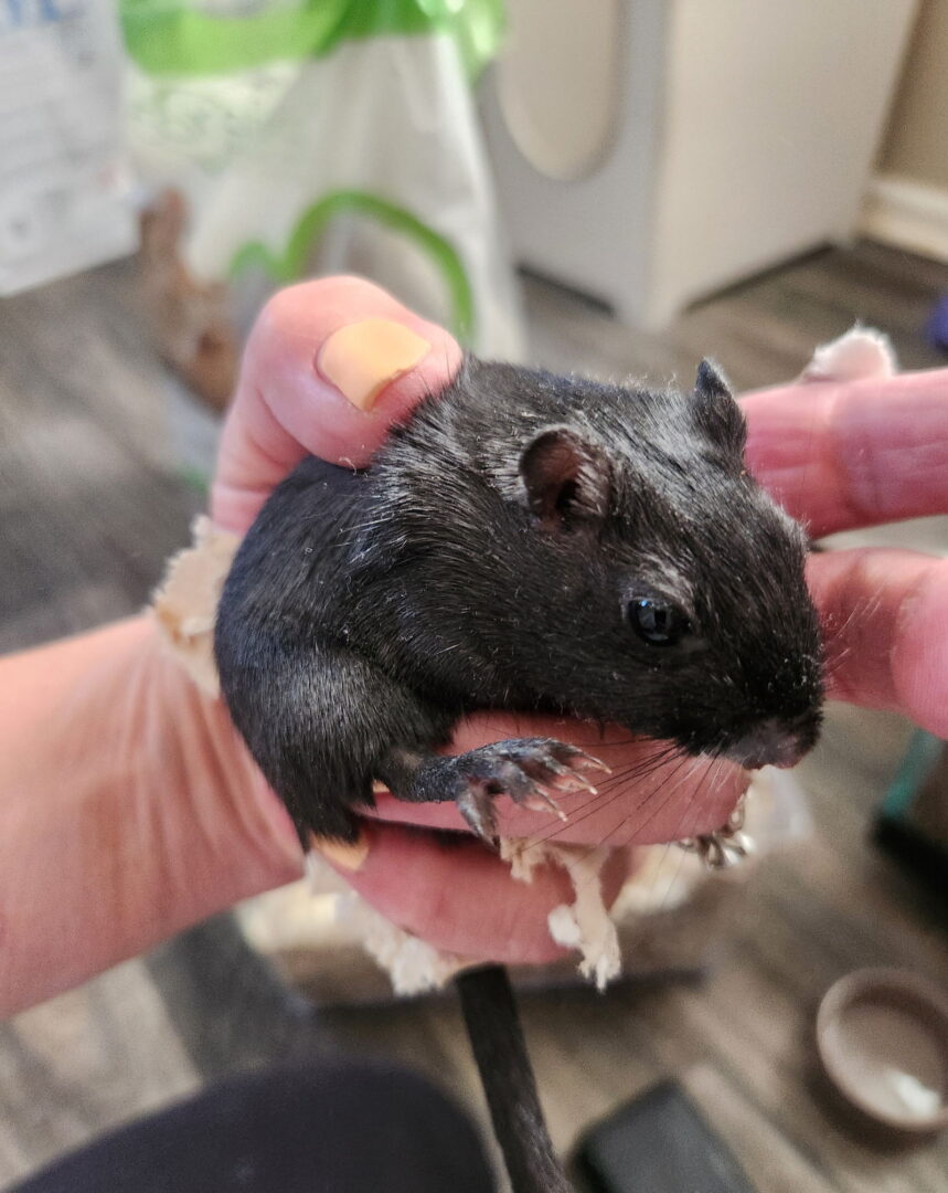 See Binx’s HomepageGo to our official websiteYou can fill out an adoption application online on our official website.Our website is updated daily If you have previously adopted from NAR, send an email to narcats@gmail.com. We keep all applications on file, there is no need to fill out another. Pop (Black) Approx. date of birth: March 2024 Adoption fee: $15.00 Pop is a female gerbil that was unsuccessfully bonded. She may have potential since she is younger. Experience is a must. She is located in the Northeast section of Philadelphia. Adoption donation is 15.00. Proof of proper habitat a must. Gerbils are active, clever animals and friendly by nature. When accustomed to handling and handled properly, gerbils are gentle critters and seldom bite. Gerbils are best suited for older children who have learned proper handling techniques and can assist parents with some of the regular care responsibilities. Gerbils have an average of 3 to 4 years and are active during all hours of the day. Gerbils hate being alone and love company, and do best when kept in same-sex groups. Please fill out a Small Animal Adoption Application. All questions may be directed to narcats@gmail.com. All correspondence will be initiated through email until approved. Please check your SPAM folder. We do request that if you have a current set up to take a picture. The picture MUST include a sign with NAR and the date written on it. Please send to narcats@gmail.com. See all our Gerbils for adoption at http://nar.rescuegroups.org