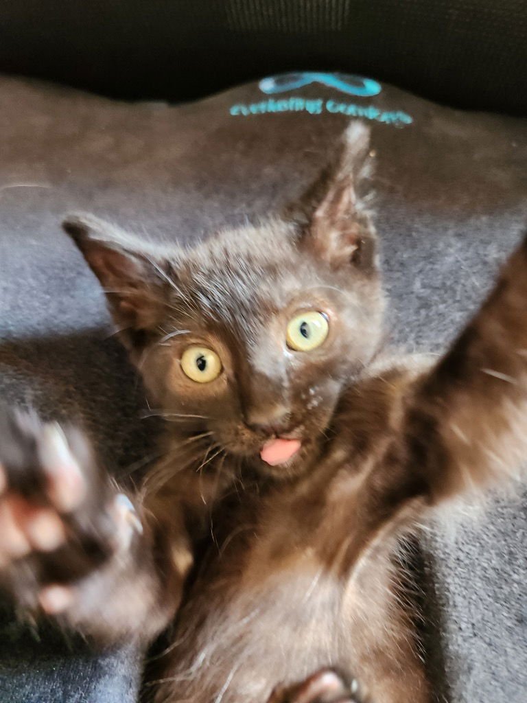 Binx is black kitten with green eyes. He is full of energy loves to play and hunt toys. He has a mighty purr and enjoys high places. His toys of choice are tunnels, string toys, lasers, and balls. He is good with other cats and children but can also be very independent.To inquire about adopting this cat please complete an adoption application at tinyurl.com/ccapadoptions All fosters under the San Antonio Feral Cat Coalition: Community Cat Adoption Program are fostered privately through foster homes. They are spayed/neutered, given age appropriate vaccinations, and microchipped before adoptions are finalized. SAFCC is a 501c3 non profit, all volunteer organization serving San Antonio and Bexar County, Texas. Visit sanantonioferalcats.org for more information or email adoptions@sanantonioferalcats.org for information on adopting.