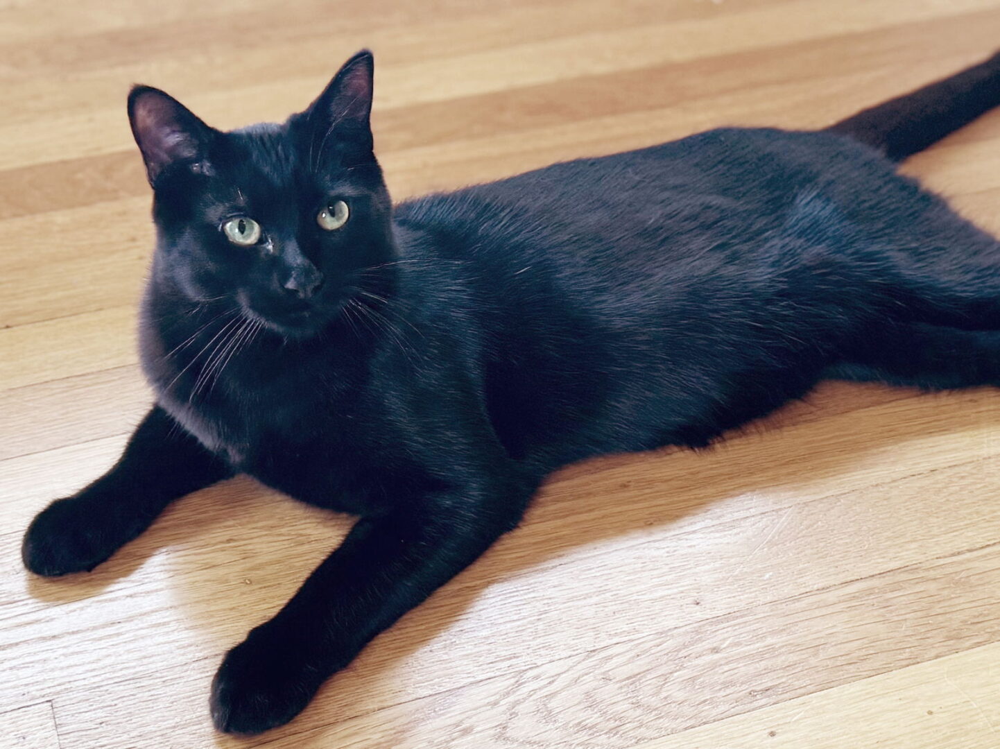 Binx is a sleek black kitty with beautiful light green eyes. He is smart, curious and keeps himself busy checking everything out. He is also very acrobatic and energetic as he jumps high to get to wand toys. When he has tired himself out he can be found sleeping in a pile with his litter mates. Binx is a talkative little guy and is always makes himself available if pets or treats are being offered. He requires another young cat to play and cuddle with and would be ok in a home with adults only or with cat savvy kids over the age of eight. He would likely be ok with a calm dog. He'd love to be adopted as a pair with his brother Bubbles . We estimate Bubbles was born on May 20, 2024. Kitty Bio #581LRo-Bi. If you're interested in adopting this or another of our cats, please fill out our adoption questionnaire at https://icraeastbay.org/adopt/how-to/.