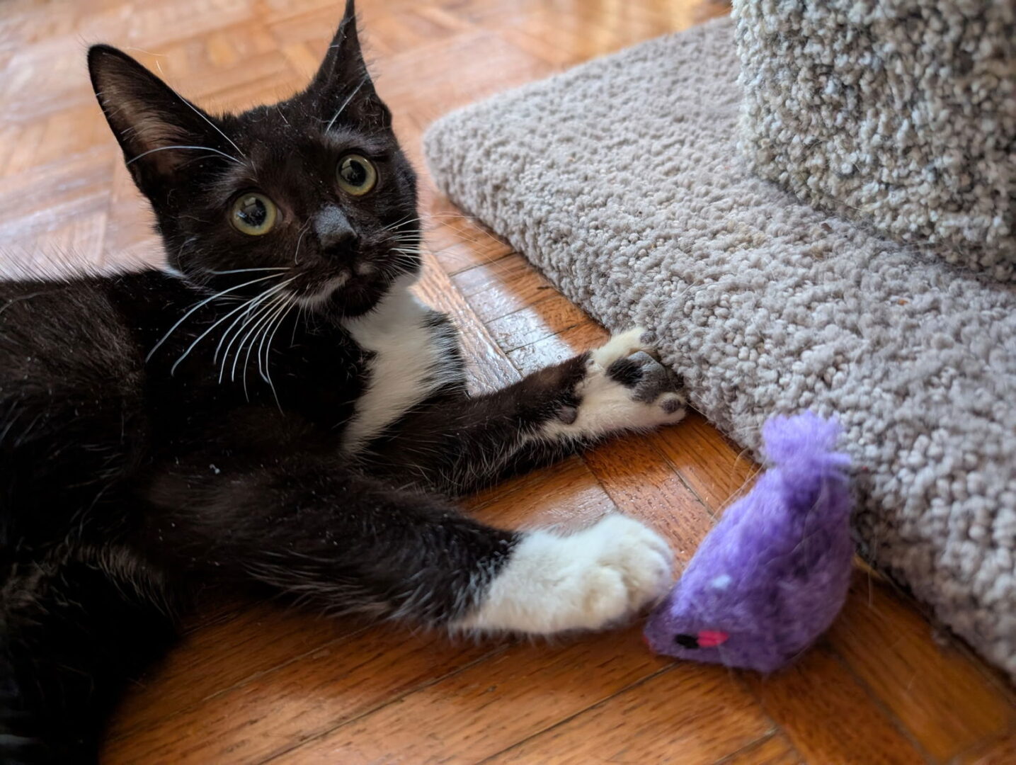 Meow, meow there! I'm Mr. Biscuit, a handsome black and white male tuxedo that is always dressed for any occasion. I am a total sweetheart and big biscuit maker. I love people, other cats and I've grown up in a house with cat-friendly dogs. I'm happy and joyful. I am super playful, love to explore, play with toys, and I adore cat trees and naps. I am vetted (including being neutered, have my vaccinations, FIV/FELV liter tested, microchipped, flea and wormer prevention). If you're ready for a fur'ever friend, apply to meet me! Approx DOB 10/31/2025Interested in one of our cats/dogs? First step: Fill out the required adoption application. We do not adopt to anyone living outside of the greater Dallas/Fort Worth area. All our cats/dogs will be spayed/neutered, heart worm tested (dogs-age appropriate), FeLV/FIV test (cat/litter), microchipped, and current on vaccinations. We do not adopt on a first-come, first-served basis. We review all applications received to ensure that the animal and the applicant are a good match based on personal experiences with the animal. These animals live in foster homes with us, so we are familiar with their habits and behaviors. Home visits may be required prior to adoption approval. To fill out an application online or to find out more information about our adoption process, visit www.friscohumanesociety.com & click on the "Adoption" link or visit the link below. Cat Adult (1-9 years) Adoption Fee – $145 Dog Adult Adoption Fee – $185 Kitten/Junior (under 1 year) Fee – $165 Puppy/Junior (under 1 year) Fee – $185 Cat Senior (10+ years) Adoption Fee – $105 Cat Special Needs Cat Adoption Fee – $105 *Adoption payment methods: cash, credit card, personal check (with valid TX driver license). Adoption Process: friscohumanesociety.com/adoption-process Cat Adoption Application: friscohumanesociety.com/cat-adoption Dog Adoption Application: friscohumanesociety.com/dog-adoption Meet some of our adoptable at the Frisco PetSmart Adopt-A-Pet center Friday-Sunday. Adoption counselors are available onsite at PetSmart most Saturdays & Sundays, 12-4 p.m. to conduct meet and greets and onsite adoptions. Please complete an online adoption application and someone will contact with you. At this time, our meet and greet Dog Events are by appointment only. Please complete an online adoption application and someone will be in contact with you. The Frisco PetSmart is located at 3333 Preston Road, Frisco, TX 75034 in the Stonebriar Center near Ulta and DSW. For further information, please e-mail us at fhsadmin@friscohumanesociety.com or call (972) 498-8980.