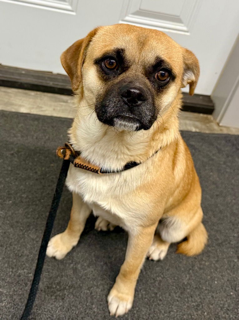 Biscute arrived from a home that had him for 8 months. He was kept outside and shared food with the other dogs.The owner could no longer care for him so Homeward Bound said, “Come on Biscute, we’d love to have you”. From the very start he was friendly and playful, very excited with toys. Quickly he showed us how he can jump and climb. Every human he met was instantly his friend. It was obvious that he’d never had a collar, walked on a leash nor been allowed inside the door. After intake, he was walked and did not seem to mind the leash.Then he was introduced to the sds “bunch”. He was very pleased, ate hungarily, had difficulty navigating his water bowl. After his next walk, Biscute was eager to get back inside. He had already learned he liked a heated kennel and willingly went in. Biscute will go for his first and entire vetting and then be available after the first of March. He weights 23 lbs, has a tan coat with black on his face, curled tail and a pug mix looking face. Maybe a puggle. His adoption fee is $300.00~~If you are interested in this animal, you can complete the questionnaire found on the available pets page of our website http://hbpr.org. You can also email homeward@ellijay.com, contact us on facebook at https://www.facebook.com/HBPR30540/ or call 706-698-4663.Thank you for considering a rescue dog or cat! Don't shop when you can adopt!