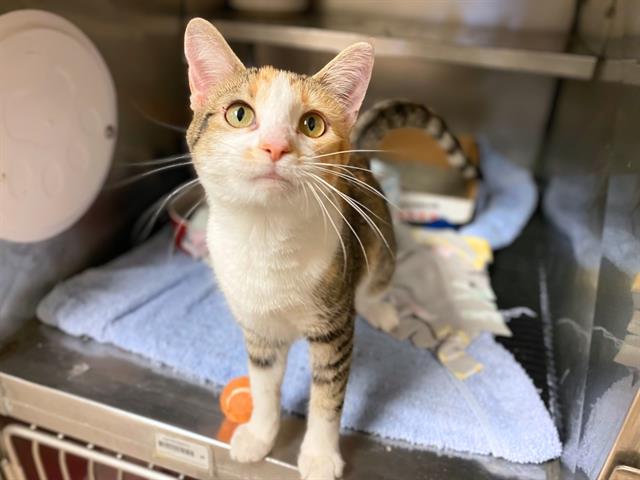 Meet Bitsy! Tiny name, big purrsonality! Bitsy is a lively, little adventurer who loves to climb, explore, and turn every corner into her personal playground. She’s smart, curious, and full of playful mischief – the kind of kitten who keeps you laughing… and occasionally guessing what she’ll get into next! Bitsy thrives on activity and would love a home that’s ready to keep up with her energy. She’ll need an environment that gives her space to climb, jump, and burn off that kitten enthusiasm, plus some interactive playtime (10-15 minutes in the morning and evening, at minimum) to keep her happy and healthy! Bitsy would love a feline friend who can match her zoomies – another kitten or an active young cat would be the perfect playmate! If you’re looking for a playful partner-in-crime who will fill your home with fun and affection, Bitsy is your girl!