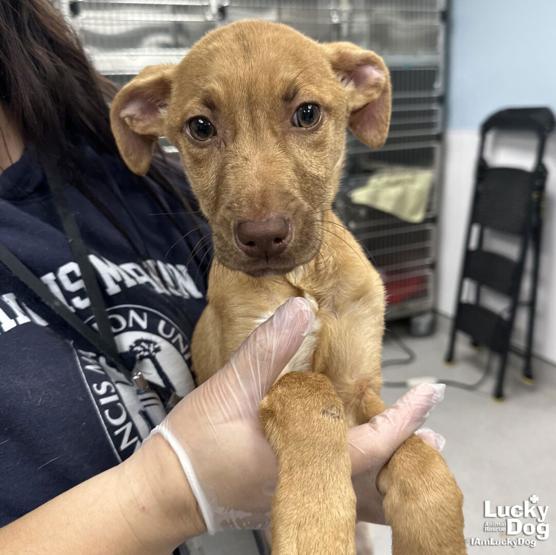 sweet baby girl seeking happily ever after! BIZZY NEEDS A FOSTER OR FOREVER HOME!!!! Name: Bizzy Best Guess for Breed: Shepherd and terrier mix Best Guess for Age: 3 months as of 12/14/24 SEX: Female Estimated Weight (puppies’ weights change quickly!): 11.7 lbs as of 12/13/24 Gets Along With: Most puppies are in the prime of their socialization window and will do well with other dogs, cats and kids so long as they receive patience and proper training. Currently Living at: Rural shelter; needs a foster or forever home in the DC area to come up! Special Adoption Considerations: Puppies under 6 months of age need to have multiple potty breaks/exercise throughout the day. Potential adopters with a standard 8-hour workday must be willing to make arrangements to meet the needs of their puppy. Bizzy is Looking For: Her forever home! Right now what she wants is lots of snuggles, lots of play time, and then more cuddles and deep naps on warm laps! Soon she’ll be ready to explore the neighborhood – the local parks – the world! Puppy school would be great too, so she can learn to be the goodest girl. What she wants most of all is to grow up as a well-loved family pet, to explore the world by the side of her humans, and to always be under her own roof, safe and loved. What do you say? Is Bizzy the one for your home and your heart? What My Foster Says About Me: We will update this once she has arrived in the DC area and spent some time in foster care Puppy Vetting Requirements: Lucky Puppies have had their age appropriate vaccines, but may not yet be “fully” vaccinated. It is the adopter’s responsibility to ensure that the remaining puppy vaccines are given at the appropriate time. Please also keep in mind that, until your puppy is fully vaccinated, they are at greater risk for illness than an adult dog. Due to this puppy’s young age, she/he has not yet been spayed or neutered. As part of the adoption contract, it will be your responsibility, as the adopter, to ensure that this is done no later than March 14, 2024. There are NO EXCEPTIONS and NO EXTENSIONS to this date. A non-refundable spay/neuter deposit will be collected if you would like Lucky Dog to pay for this animal to be spayed/neutered at one of our low cost partner vets. Your new puppy will need to work on their house training and will also need to go to obedience school so they can grow into a well-socialized dog! TO ADOPT: The adoption fee for this puppy is $485, which includes the cost of routine vetting and transport from the shelter. If you are interested in adopting, please complete the Adoption Questionnaire online bit.ly/adoptaluckydog Lucky Dog Animal Rescue does our best to provide accurate information about the dogs we have for adoption. That said, we cannot make any guarantees about age, breed or temperament. Thank you for contacting Lucky Dog Animal Rescue and helping to save a life! Please visit us online at www.luckydoganimalrescue.org . BE A FOSTER!!! Fosters make it possible for Lucky Dog Animal Rescue to save and care for homeless and abandoned dogs! To learn about fostering, please contact fostering@luckydoganimalrescue.org! BE A SPONSOR!!!! Sponsors help Lucky Dog support the many dogs we save. To learn more about sponsorship, please contact info@luckydoganimalrescue.org . ​