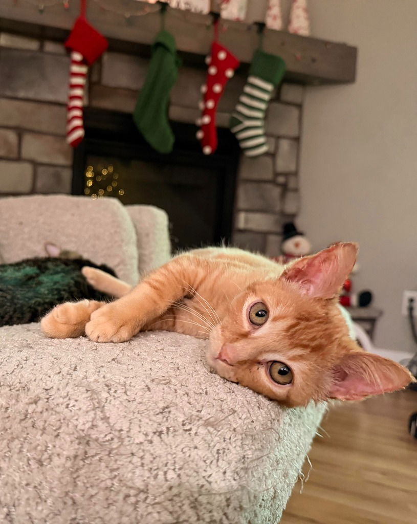 Bjorn is an energetic, goofy little orange kitten who brings sunshine wherever he goes! With his rambunctious zoomies and curious nature, he’s always ready for an adventure whether that’s chasing toys, wrestling with his brother, or exploring every corner of the house. Bjorn is an absolute sweetheart. When he’s done being silly, he melts into your arms for snuggles and purrs like a tiny engine.Bjorn gets along wonderfully with kids, dogs, and other cats. He must be adopted with his brother Sigard or into a home that already has a friendly resident cat, as he thrives with feline companionship. If you are interested in adopting a CAWS pet, please fill out an online application at https://caws.org/adoption-application