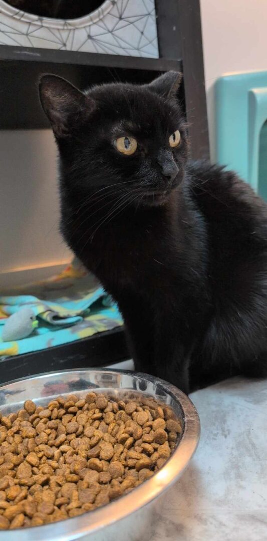 DOB: 7/17/2014 ☠️ Captain Black Pearl – The Lap-Loving Legend! ☠️ Avast, ye landlubbers! Feast yer eyes upon Captain Black Pearl, a seasoned sailor of the high seas (or, at least, the coziest spots in the house). At 10 years old, this elegant black-furred beauty has retired from her wild adventures and is ready to settle into a life of luxury—preferably on your lap. Black Pearl is a treasure worth more than gold. She’s a gentle, loving lass who enjoys the simple things: a warm place to rest, a kind human to dote on her, and plenty of chin scratches. She’s navigated many tides in her time, but now she’s looking for a forever port where she can rest her paws and rule her kingdom from the comfort of a cozy lap. If you’re in need of a loyal first mate who will stay by your side through calm and storm, look no further—Captain Black Pearl is ready to set sail into your heart. Adopt this precious gem today! âš“ Come meet me at the cage-free Adoption Center! All cats are spayed or neutered, vaccinated and tested for FIV/FeLV. **If interested in adopting me, please fill out an online adoption application at https://colonycats.org/adoption_app.html to expedite the process. Due to the large number of inquiries received, we are unable to respond to emails quickly.**