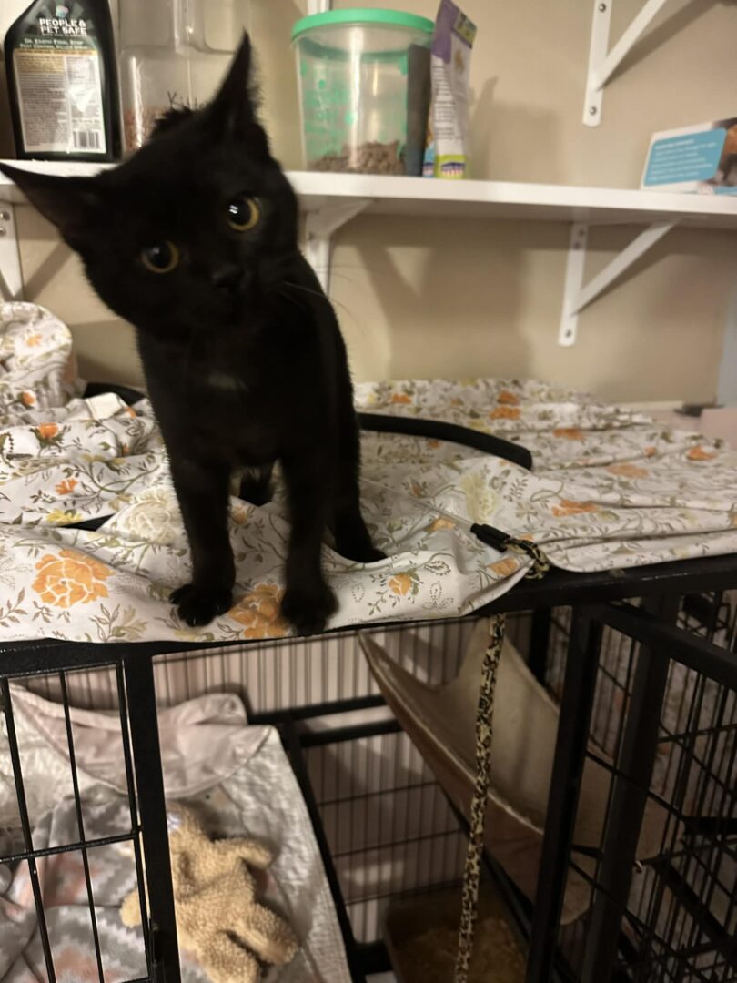 See Black Pumpkin’s HomepageGo to our official websiteYou can fill out an adoption application online on our official website.This baby was found on the side of the road by a firefighter and kindly brought to the shelter. She is being treated for a bad ear infection, but as soon as she is better, will be ready for her new home. She is as sweet as pie and good as gold. She will possibly need another kitten or friendly cat to keep her company.