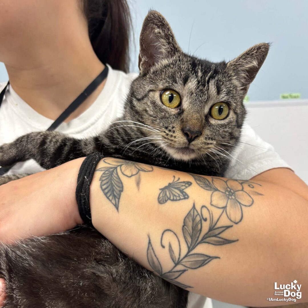 Please contact Lauren McCarty (laurenmc@luckydoganimalrescue.org) for more information about this pet.Brave Kitten Looking for a Home BLAIR NEEDS A FOSTER OR FOREVER HOME!!!! Come meet Blair and other great adoptable cats this Sunday (06/15) from 12-3 pm at the PetSmart in Falls Church, VA (6100A Arlington Blvd, Falls Church, VA 22044)! Name: Blair Best Guess for Breed: Domestic Short Hair Best Guess for Age: 7 months as of 5/4 Est. DOB: 10/4/25 Sex: Female Approximate Weight: TBD Coloring: grey tabby Type of Hair: short Gets Along With: Because of her young age, Blair will likely get along with other cats, dogs and kids with an acclimation period. We’re happy to help with tips and tricks! Currently Living at: Foster in the DC area! I am Looking For: My loving forever family! Hi! I’m Blair, and I am a cute little kitten! I won’t ask for much- just some love, cuddles and lots of toys so I can run and play and be my kitten self. What the Shelter Says About Me: Blair showed up at a local fire department and they planned to keep her. When they went on a call Blair would race to get into the fire truck and then wouldn’t get out of the truck. This past weekend, she decided to help them even more and got out of the truck. She suffered serious burns on her back legs, and has a severed Achilles tendon. Lucky Dog is working hard to get her healthy! Kitten Vetting Requirements: Your kitten may not be fully vaccinated upon adoption. You will be responsible for providing whatever remaining vaccines are needed to complete the kitten vaccine series. TO ADOPT: The adoption fee for this kitten is $220 ($380 for two cats or kittens adopted together), which includes the cost of routine vetting. If you are interested in adopting, please complete the Adoption Questionnaire online at bit.ly/adoptaluckycat Lucky Dog Animal Rescue does our best to provide accurate information about the cats we have for adoption. That said, we cannot make any guarantees about age, breed or temperament. Thank you for contacting Lucky Dog Animal Rescue and helping to save a life! Please visit us online at www.luckydoganimalrescue.org . BE A FOSTER!!! Fosters make it possible for Lucky Dog Animal Rescue to save and care for homeless and abandoned dogs! To learn about fostering, please contact fostering@luckydoganimalrescue.org BE A SPONSOR!!!! Sponsors help Lucky Dog support the many dogs we save. To learn more about sponsorship, please contact info@luckydoganimalrescue.org !