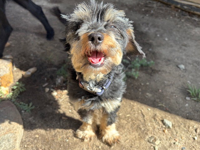 Meet Blake! Blake is 2-years old, 10 pounds, and full of sweetness! He walks well on a leash, loves running in the yard, says hi by standing on his hind legs, knows how to use a dog door, really likes belly rubs, and is a total snuggle bug. He does well relaxing, while the humans work, and does well roaming in the home free, but also can stay in a kennel, if necessary. Blake is a ladies man! He is initially hesitant around men and kids, but will likely warm up to them with the right patience and guidance. He is mostly house-trained. His mannerisms are improving with gentle reminders. He gets along well with his foster’s 50-pound dog, but has shown aggression towards other dogs that are alphas or overly playful. He will need to be properly introduced if there are other pets in the home to see if it’s a good fit (not sure about cats). He may be part Yorkie/terrier/poodle, but we aren’t totally sure. If you’re ready to meet this little guy, put in an adoption application at eapl.com. His adoption fee is $375