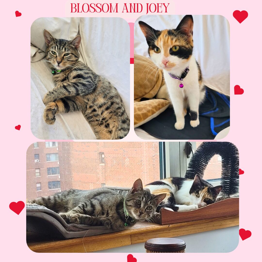 Flashback to the 1990s with our brother and sister duo Blossom and Joey! (Where are the 90s sitcom fans!?) Blossom is the sweet , gentle playful sister following her brothers lead and adorably running through kitty play tunnels, and Joey is the super outgoing , silly brother chasing her through them and all around! Both are absolutely darling, gentle , and super sweet! They love to play and run down the hall chasing each other – and love when people play with them , especially with wand toys and toy mice! Even better is they get along with Foster’s adult cats – they didn’t even bat an eye , or hiss when they first met- they are just easy going babies. They both can easily be scooped up and kissed on the head! They’re just two sweet kittens looking for their purrfect forever home. Blossom is spayed and Joey will be neutered when of appropriate age in the next couple of months in coordination with adopter. Both have their initial fvrcp vaccines . To apply to adopt this darling duo email nycatcoal@yahoo.comor call Joan at (718) 671-1695