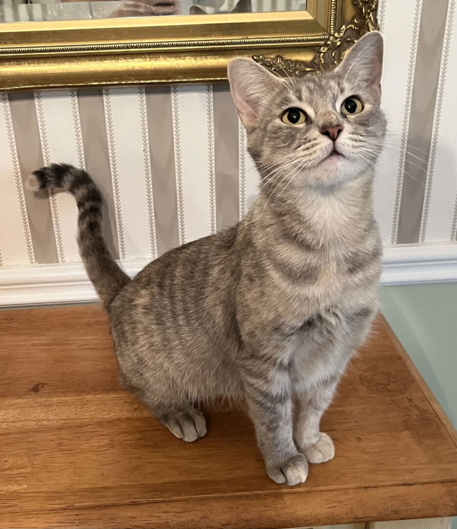 Bluebell, very affectionate, is an ~1 year old beautifully marked spayed female, tested, shots, microchipped. Mellow, gentle, quiet, gets along okay with other cats. Not yet dog tested. Her adoption fee is $125. We offer a 30 day money back satisfaction return policy Email marla@adopt-a-kitty.org or text 251-404-0022 Thanks from ADOPT-A-KITTY.ORG