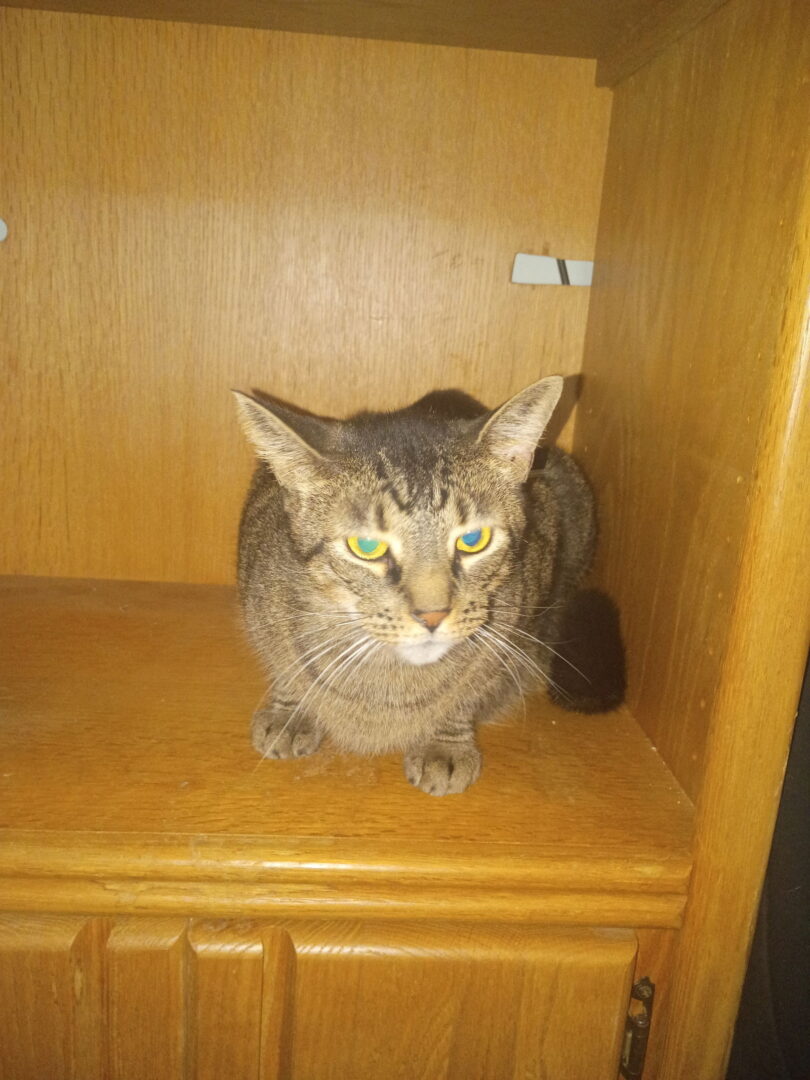 Bob is a large boy but not because he’s overweight but he is taller than most small dogs and does have the attitude of a small dog. You can pick him up but will hurt your back lol. Bob likes most people but can be shy at first. As long as other cats are not aggressive with time he’s good. Bob is over 5 yrs old, neutered, UTD on shots, FIV negative and microchipped and loves attention.