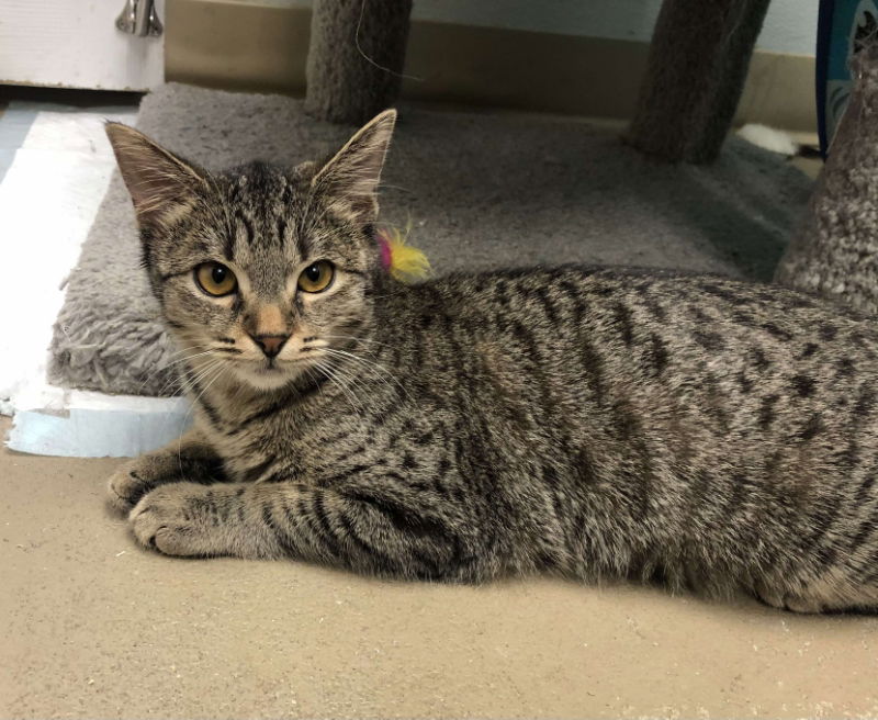 Bobbi Jo- Female DOB 6/20/2024 Domestic Short Hair Bobtail – Gray Tabby Bobbi Jo is a one-of-a-kind, six-month-old gray tabby with the most endearing little bobbed tail, a unique feature she was born with. Her journey to us began during a storm when she sought refuge on a kind stranger’s porch, and now she’s ready to find a forever home where she can truly thrive. While she may be a little shy at first, she’s quick to warm up and share her sweet personality. She’s the kind of kitty who will love spending quiet time with you, happily curling up by your side or even snuggling in bed once she feels safe. Bobbi Jo enjoys playing with toys and adores treats, which is a great way to win her trust. Currently, Bobbi Jo is adjusting in our quiet room, where she’s showing her playful and curious side. She gets along well with other cats and would thrive in a home with a feline friend to keep her company. However, she’ll need a calm environment without dogs or young children, as too much noise or activity might overwhelm her sensitive nature. Please apply via our easy online application at https://furrr.org/cat-adoption-process/All kitten(s) and cat(s) at FuRRR Feline Rescue are spayed/neutered, up to date on vaccinations for their age, combo tested for FIV/FeLV, microchipped and have a Health Certificate from a licensed NH veterinarian. Our application is available to be completed online at https://furrr.org/cat-adoption-process/ Applying DOES NOT guarantee approval. We hold meet and greets with approved applications only. (Kittens are available for adoption in pairs only unless they are going home to another kitten or young cat under 3) Our policy is strictly NO DECLAWING and INDOOR ONLY. Adoption fees: Kitten to 1 yr – $300 Kitten pairs $550 Adult cat 1+ yr to 8 yr – $200 Adult pairs $350 Cat 8+ – $75