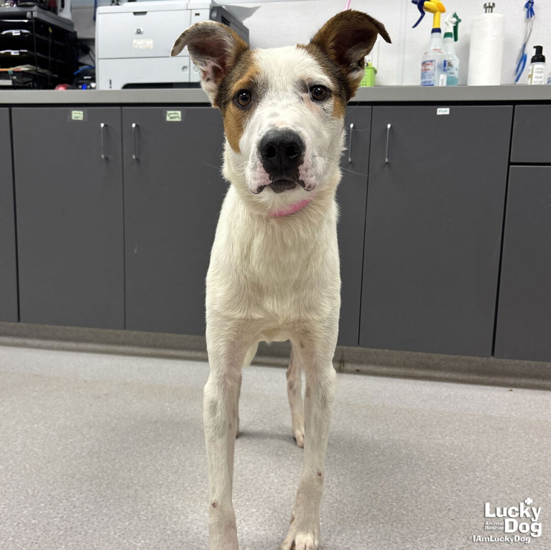 is sweet puppers! is not fast food place! BOJANGLES NEEDS A FOSTER OR FOREVER HOME!!!! Name: Bojangles Best Guess for Breed: Shepherd and retriever mix Best Guess for Age: 2.5 years as of December 2025 SEX: Male Approximate Weight: 42 lbs Gets Along With: Other dogs! We haven’t seen him with cats or kids but we are happy to discuss integration techniques with any potential adopters! Currently Living at: South Carolina shelter -needs a foster or forever home in the DC area to get up here! Special adoption considerations: Bojangles is a truly Lucky Dog. He tested positive for heartworms, but landed in a place where heartworm treatment is provided! Heartworm is not contagious to people or other pets, but results from mosquito bites. Heartworm, if left untreated, is life threatening, but after treatment, dogs that were heartworm positive should suffer no significant long-term effects so long as they are kept on a monthly heartworm preventative. Heartworm dogs can resume full active and normal lives, but need to be kept calm for 4-6 weeks after treatment. We are happy to discuss where in the treatment process this Lucky Dog is in right now! Just email the adoption coordinator – the address is at lower left! Bojangles is Looking For: His forever home! This sweetie has got all that awesome young-dog energy and is eager for sniffy trotting walks and all the adventures his new humans can dream up. Quality kibble and a cushy dog bed – yes, those too! But you know what he wants most of all? To know where he belongs, to be safe and loved. Bojangles has so much to give to his humans – adoring gazes, love, and loyal companionship for all his days. What do you say? Can you see him trotting by your side? What My Foster Says About Me: We will update this after he has spent time in foster care. Lucky Dog cannot guarantee any dog is housebroken. All of our dogs are working on their crate training. TO ADOPT: The adoption fee for this dog is $475, which includes the cost of routine vetting, including vaccinations, spay/neuter, and heartworm treatment. If you are interested in adopting, please complete the Adoption Questionnaire online at bit.ly/adoptaluckydog Lucky Dog Animal Rescue does our best to provide accurate information about the dogs we have for adoption. That said, we cannot make any guarantees about age, breed or temperament. Thank you for contacting Lucky Dog Animal Rescue and helping to save a life! Please visit us online at www.luckydoganimalrescue.org . BE A FOSTER!!! Fosters make it possible for Lucky Dog Animal Rescue to save and care for homeless and abandoned dogs! To learn about fostering, please contact fostering@luckydoganimalrescue.org ! BE A SPONSOR!!!! Sponsors help Lucky Dog support the many dogs we save. To learn more about sponsorship, please contact info@luckydoganimalrescue.org .