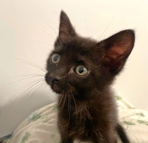 Please contact Della @ (kittycityks@aol.com) for more information about this pet. Our adoption center is open both Saturday & Sunday every weekend! Saturday's noon-5pm & Sunday's noon-4pm. Bolero, like her brothers Barney and Gilbert, is a happy and fun-loving little kitten. She enjoys playing catch-me-if-you-can with her siblings– two brothers and two sisters. There is always some race going on among all of them! Bolero entertains herself with playing with all kinds of toys and is also very happy to snuggle with her humans. Bolero watches the big dogs in her foster home and does not mind getting kisses from one of them. She is a good kitty and likes dry food as well as wet food and some of the Fresh Pet brand of kibbles.She would be happy to have a furry friend in her new home–fingers crossed that one of her siblings will share a new home with her! This kitty should get along with kids, other cats, and cat-friendly dogs given proper introductions. Bolero was born approximately April 16, 2025, and her adoption fee is $160, or adopt two and the second is one-half price. She is spayed, up-to-date on shots and deworming, has a microchip, and tested negative for feline leukemia virus. You can visit our adoptable cats and kittens during weekend business hours at our adoption center, address and times above. During the week, all our kitties live in licensed foster homes, and while most do come to the adoption center each weekend, not every kitty attends every weekend. For more information, or to confirm whether a particular cat or kitten will be present that weekend, please email kittycityks@aol.com. Kitty City Kansas Rescue is a volunteer, non-profit organization.