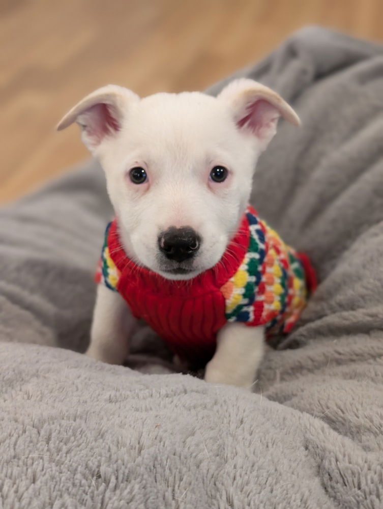 Name / Breed / Age: Bolt, Westie, puppy Personality Traits: Curious, Happy go lucky, Loveable Likes / Dislikes: LOVES toys – all the toys, all the time. Bolt does NOT love missing a meal. Health and behavior history: Up to date on vaccines, dewormed, microchipped and will be neutered between 4-7 months. Clean bill of health from the PIPs Vet!Meet Bolt – Your Playful and Cuddly Best Friend!Bolt is a spark of love, loyalty and energy at your feet. Rounding the corner with his short legs and bouncy ears, he does the best little hop-skip-runs. Bolt is loving the family life with his foster parents, foster brothers (three of them!) and big foster sister (Lucy, the dog). He is comfortable rather quickly exploring new places and if he needs a moment to himself, he finds the closest coffee table or pair of feet to scoot behind. Then, you'll see his little face peeking out to rejoin the action. Bolt sleeps all night in his crate and doing great with his overnight potty training. He's well on his way to conquering potty time during the day. (We can't blame the cute pup for a few accidents when there's so much to play with!)Bolt is one of our PIP-abled pups as he was born with hearing impairment. His foster family notes that it's quite the positive to have everyone up and running around for school in the mornings while Bolt sleeps through all the action! Bolt will need a home and family that helps him learn commands and manners through the use of sign language or hand signals, etc. He is working on learning "Hi", "Come here", "Potty" and "Sit" – and Bolt learns best with no distractions, plenty of stinky smelling treats and lots of repetition. He does occasionally seem to hear sounds of a higher frequency, but not with regularity. He's super aware of his surroundings, has the most adorable bark and deserves ALL the love.Welcoming Bolt into your home promises you a lot of polaroid moments. Pretty much every move Bolt makes is absolutely adorable. His soft, white fur captures the attention of everyone. And his leap frog personality keeps you smiling.