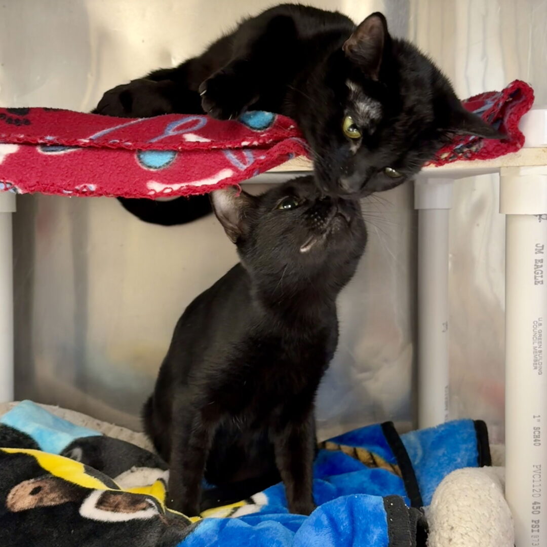 Meet Bon Bon & Tootsie, a charming pair of feline sisters with a bond as strong as their purrs. Their sweet and friendly nature is matched only by their shy demeanor, making them a delightful duo. Despite their past, these girls have proven to be resilient, raising multiple litters with love and care. As sisters, they share a unique bond and need to be adopted together. Their gentle companionship is sure to bring a calming presence to any home. Adopt Bon Bon & Tootsie and let their love fill your life with joy and warmth. If you are interested in adopting, please fill put an application online at ahimsahaven.org . Meet and greets are with an approved application by appointment only. As always, cats that are ready to be adopted are spayed/neutered, have age appropriate shots, are micro-chipped, dewormed/deflead, and FEL/FIV tested.