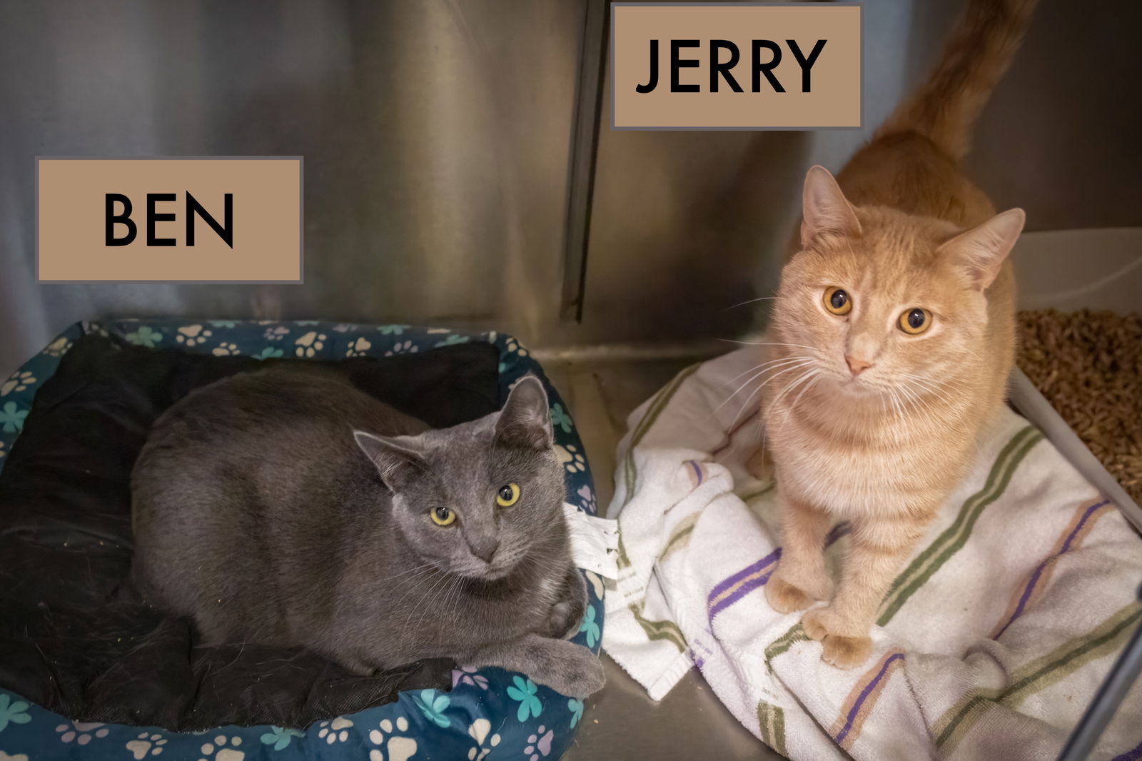 Handsome Bonded Pair!! Ben (gray) and Jerry (polydactyl orange tabby) are a sweet pair, wondering what happened to their family and home. Through no fault of their own, they were recently returned and would love to be in a home environment again. They are a bit more than a year old. Ben and Jerry have been settling in at their foster home. These boys are lively and curious. Both love to play! They also enjoy watching the world go by from a perch at the window. More to come, including photos and a video. Please submit our no-obligation Adoption Application for a meet and greet or to adopt: https://forgottencats.org/adoption-application/. Not ready to adopt? Please consider fostering: https://forgottencats.org/foster-a-cat/. Thank you! (Foster: Nikki S)