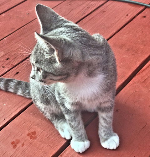 Boots is a male gray-and-white tabby kitten, born on July13, 2024. He has four white paws that make him look like he’s wearing boots. He was injured when I found him. I nursed him back to good health and this explains why he loves attention. He’s very loving and humble at the same time. He is a beautiful gray tabby with a white under belly and paws. You will fall in love with him. The adoption fee is $150. This covers the cost of spay/neuter, PVR, Rabies, flea, tick, ear mite and worm treatment. To adopt, you need to first fill out an application. Go to: https://rutherfordcountyhumanesociety.org/cat-adoption-application/ We are located in Western North Carolina. Optional transport is weekly. After your application is approved, we will contact you regarding cost and delivery if you so desire.