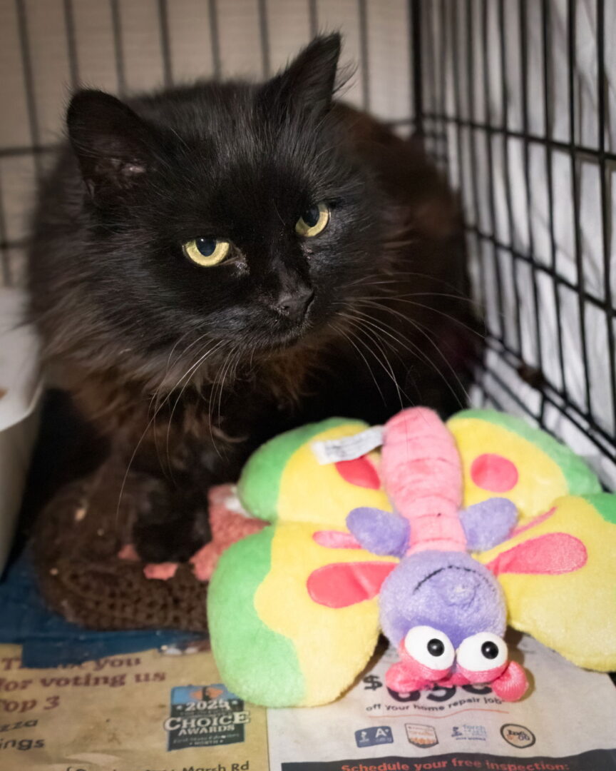 Please meet Booty! This fluffy girl with the two-toned fur had already been sterilized before she came through our doors. She is a quiet girl that likes to be petted. Please submit our no-obligation Adoption Application for a meet and greet or to adopt: https://forgottencats.org/adoption-application/. Not ready to adopt? Please consider fostering: https://forgottencats.org/foster-a-cat/. Thank you! (Foster: Trainer)