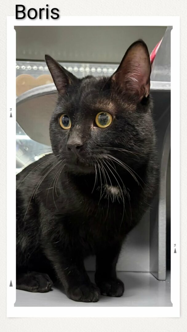 BORIS – DSH, male, neutered, black with white spot, DOB Feb 6/25
