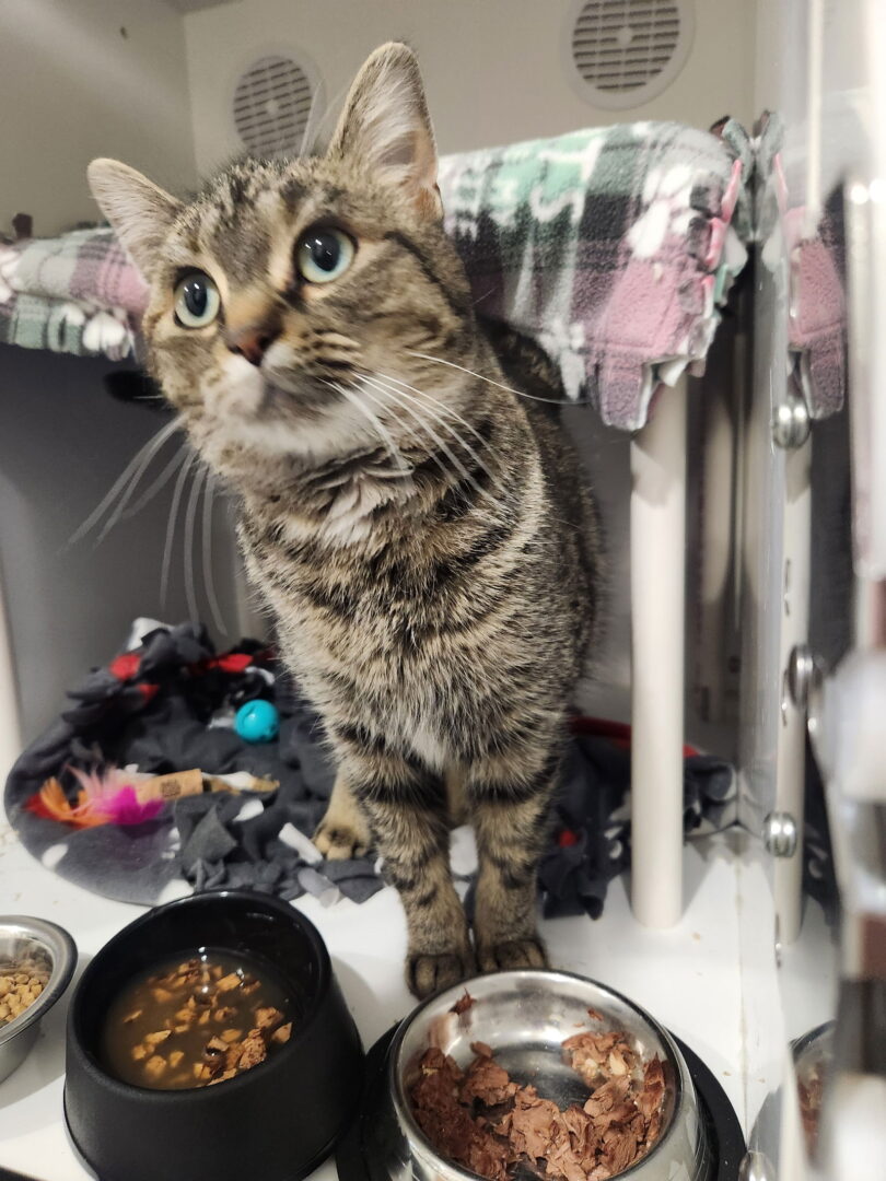 See Brindle’s HomepageGo to our official websiteYou can fill out an adoption application online on our official website. *This animal is located at our same-day adoption center partner, Coon Rapids PetSmart. Please contact this location prior to visiting to ensure this animal is still available. A paper adoption application will be completed on site so please do not submit an online adoption application. For more information on adopting from one of our adoption center partners, please visit our Adoption Center Animals page. Meet Brindle, a sweet and serene female brown tabby with a soft, short coat. Estimated to be around 1 year old, Brindle was transferred from another rescue and is now adjusting to her new environment. While she’s still settling in and working through some tummy troubles due to change in foods. Brindle is a quiet kitty who truly enjoys human attention and gentle pets. She may take a little time to warm up, but once she does, you’ll have a calm and loving companion by your side. If you're looking for a peaceful and affectionate kitty to add to your home, Brindle may be just the one! To learn more about Ruff Start’s adoption process and the care our foster animals receive, please visit our How to Adopt page. If you are unable to adopt but want to help this animal and others in our care, you can donate to support the medical and veterinary needs of all Ruff Start Rescue animals.