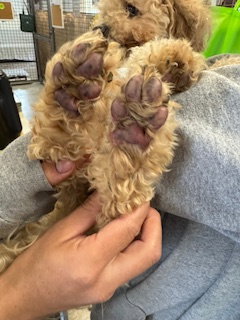 Senior Poodle from Mohave reported early Kidney issues on K/D dry. Urinate scald paws, all four. Growth on/near anus, teeth have serious dental tartar. Appears to have a hard time walking on hard surfaces, suspect due to urine scald. YL
