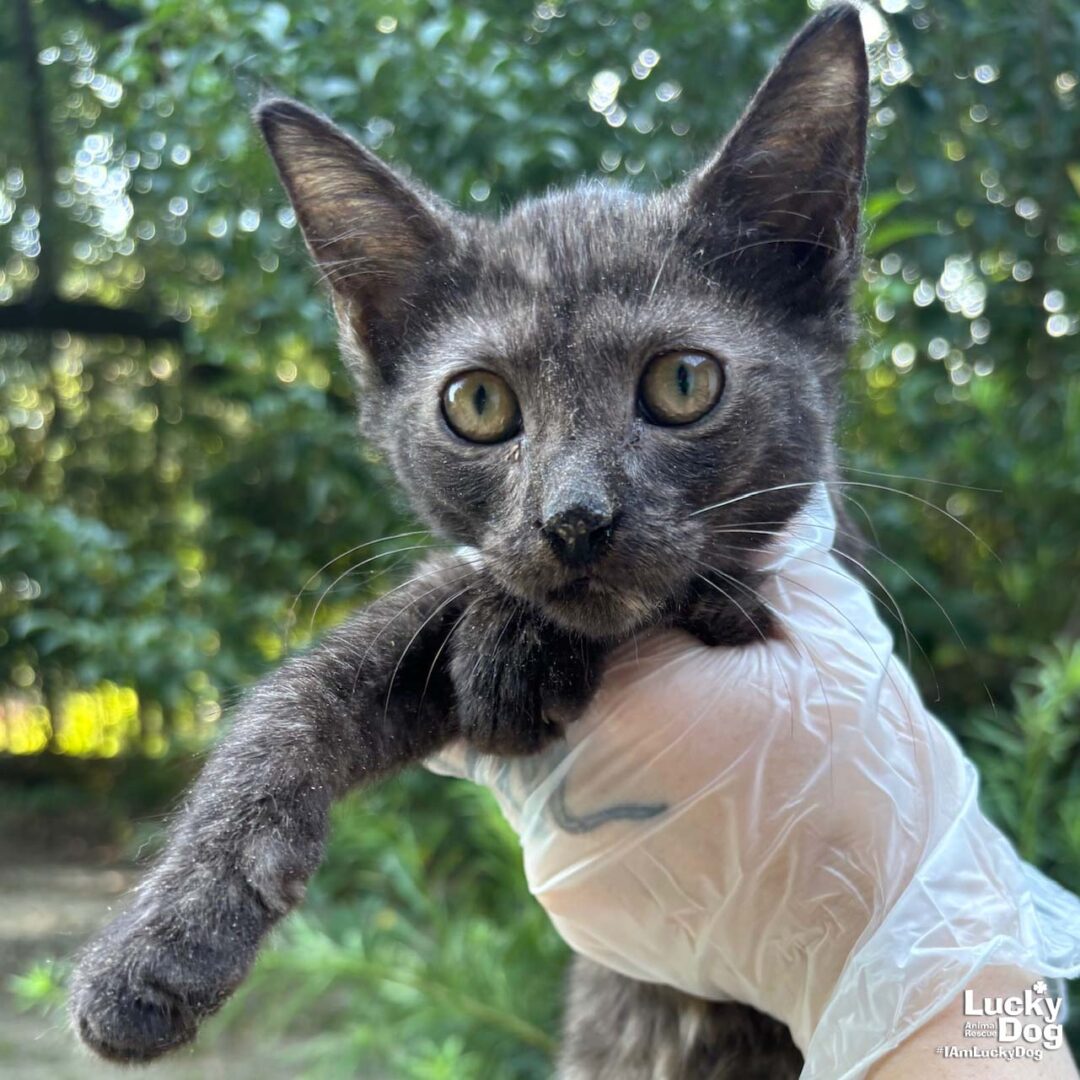 Please contact Lauren McCarty (laurenmc@luckydoganimalrescue.org) for more information about this pet.Sweet baby girl in search of her forever home!BROOKE NEEDS A FOREVER HOME! Name: Brooke Best Guess for Breed: Domestic Short Hair Age: 12 weeks as of 6/22/25 Estimated DOB: 3/18/25 SEX: Female Approximate Weight: 1lb 8 oz as of 5/5/25 Coloring: Black Type of Hair: Short Gets Along With: Because of her young age, Brooke will likely get along with other cats, dogs and kids with an acclimation period. We’re happy to help with tips and tricks! Litter: Brooke, Brynn, Baily Kitty, Blake Currently Living at: Foster in the DC area I am Looking For: My loving forever family! Hi! I’m Brooke and I am a cute little kitten! I won’t ask for much- just some love, cuddles and lots of toys so I can run and play and be my kitten self. Two kittens are better than one – consider adopting my super cute siblings, too! What my Foster Says About Me: Coming soon! Kitten Vetting Requirements: Your kitten may not be fully vaccinated upon adoption. You will be responsible for providing whatever remaining vaccines are needed to complete the kitten vaccine series. TO ADOPT: The adoption fee for adult cats is $200 ($350 for two cats adopted together). The adoption fee for a kitten (under 7 months old) is $220 ($380 for two kittens adopted together).If you are interested in adopting, please complete the Adoption Questionnaire online at bit.ly/adoptaluckycat. Lucky Dog Animal Rescue does our best to provide accurate information about the cats we have for adoption. That said, we cannot make any guarantees about age, breed or temperament. Thank you for contacting Lucky Dog Animal Rescue and helping to save a life! Please visit us online at www.luckydoganimalrescue.org . BE A FOSTER!!! Fosters make it possible for Lucky Dog Animal Rescue to save and care for homeless and abandoned dogs! To learn about fostering, please contact fostering@luckydoganimalrescue.org BE A SPONSOR!!!! Sponsors help Lucky Dog support the many dogs we save. To learn more about sponsorship, please contact info@luckydoganimalrescue.org !