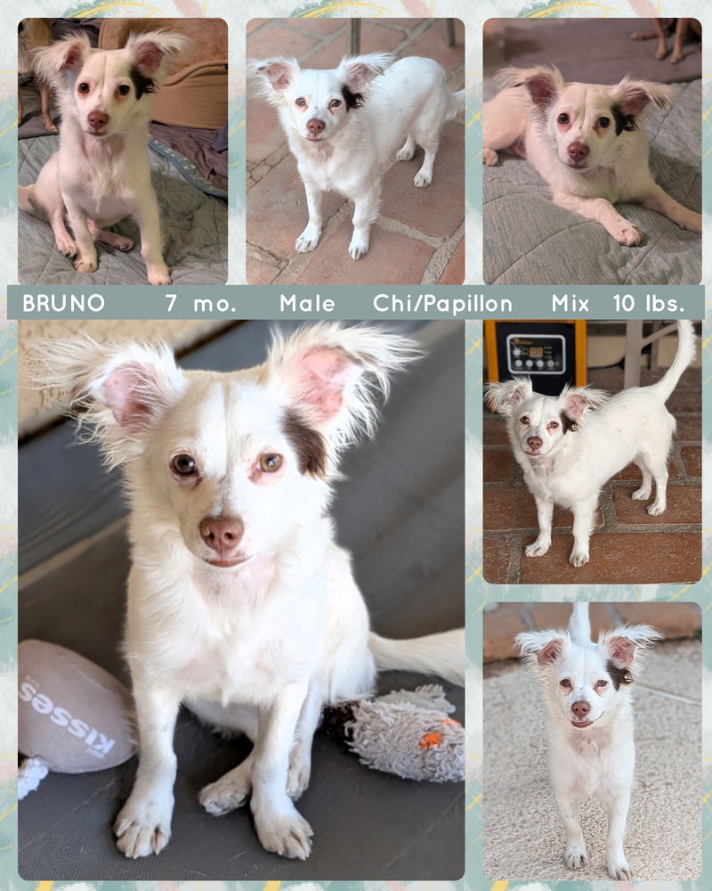 Available for Adoption!Bruno was found as a stray and brought to us for an owner search. Unfortunately no owner was found and he did not have a microchip. Bruno was fearful initially but warmed up after 24 hours and became a part of our pack. Bruno is an absolute doll! He is loving, gentle by nature, easy going, well behaved and an obedient puppy. He quickly fit in as if he'd always been here and his foster fur siblings showed him the ropes. Bruno quickly adapted to his new routine, is well mannered, obedient, eager to learn, eager to please and such a happy pup. He loves playing with his toys, chasing his ball, is respectful of them and can entertain himself. If you are searching for a buddy to fill your life with love and laughter, then Bruno Is the perfect pup for you. He is crate trained, mostly potty trained, doggy door trained, piddle pad trained, leash trained (needs more training), great with kids, cats and all dogs. Bruno has had 2 vet visits, is neutered, microchipped, vaccinated x 2 DHPP (Fully vaccinated), Rabies, Bordetella x 2 , had a 4 DX test (Testing for 2 types of Tick, Lyme and Heartworm), Nexgard Plus (Flea, Tick & Heartworm preventative), 2 dewormings, 2 fecal tests. Adopters receive all original paperwork, a 14 day health guarantee, collar, Harness, leash, seatbelt lock and a weeks worth of food. We operate on a first come first serve basis and are by appointment only. We are located in Mesa near Gilbert/Brown & offer flexible hours for meet & greet appointments. Private message if interested!