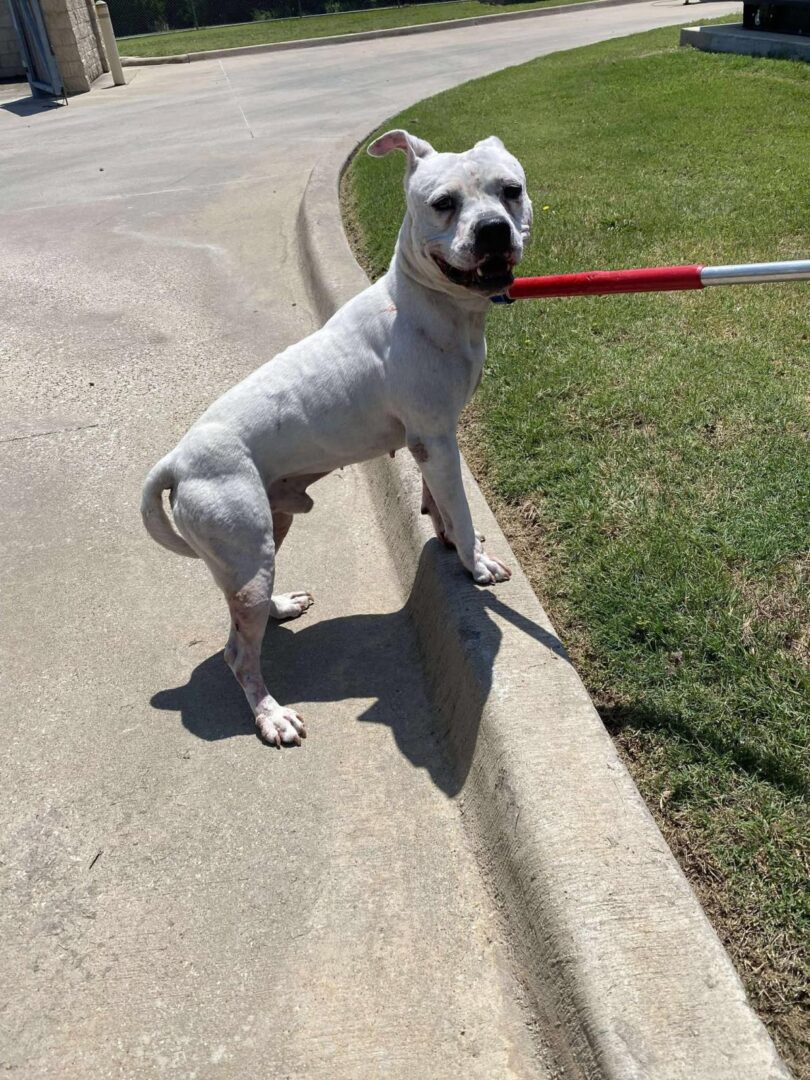 Is anyone missing a 2Âן-year-old male unaltered Pit mix? He was found off of FM 549 in Rockwall on 05/29/25. No chip. No collar. He is currently on stray hold for the next 72 hours to allow his owners to reclaim him. Please call the Rockwall Shelter at 972-771-7750 ext 2 if you recognize this dog. All animals, unless otherwise noted in their description, are at 1825 Airport Rd. in Rockwall, TX. Hours of operation are Monday-Friday 9 am to 6 pm and Saturdays 9 am to 5 pm. For questions, please call 972-771-7750 ext. 2 or email info@RockwallAdoptions.com. IMPORTANT NOTICE: All shelter animals are required by Texas state law to be spayed/neutered. RAC completes this procedure at the age of 12 weeks. If you are adopting a pet under the age of 12 weeks or an animal that has not yet been spayed or neutered, you will be required to return the pet to our facility on the agreed upon date set at the time of adoption. This policy is non-negotiable and violation of this health code is a criminal offense.