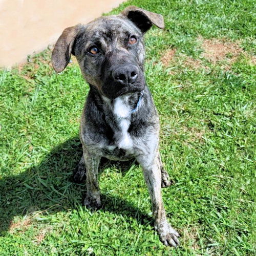 Brutus is a handsome neutered male brindle Lab/German Shepherd mix born about June 2023. He is very sweet and personable, and loves to snuggle up to people. He knows how to walk on a leash, and would make a great companion for all of your outdoor adventures. If your couch is calling, Brutus is happy to be your motivation to keep active and be healthy! Brutus is up to date on all vaccines and health care. The Adoption fee is $100. This covers the cost of spay/neuter, DHPP, Rabies, Flea, tick, heart worm check, worm treatment, and microchip. To adopt, you need to first fill out an application. Go to: https://rutherfordcountyhumanesociety.org/dog-adoption-application/ We are located in Western North Carolina. Optional transport is weekly. After your application is approved, we will contact you regarding cost and delivery if you so desire.