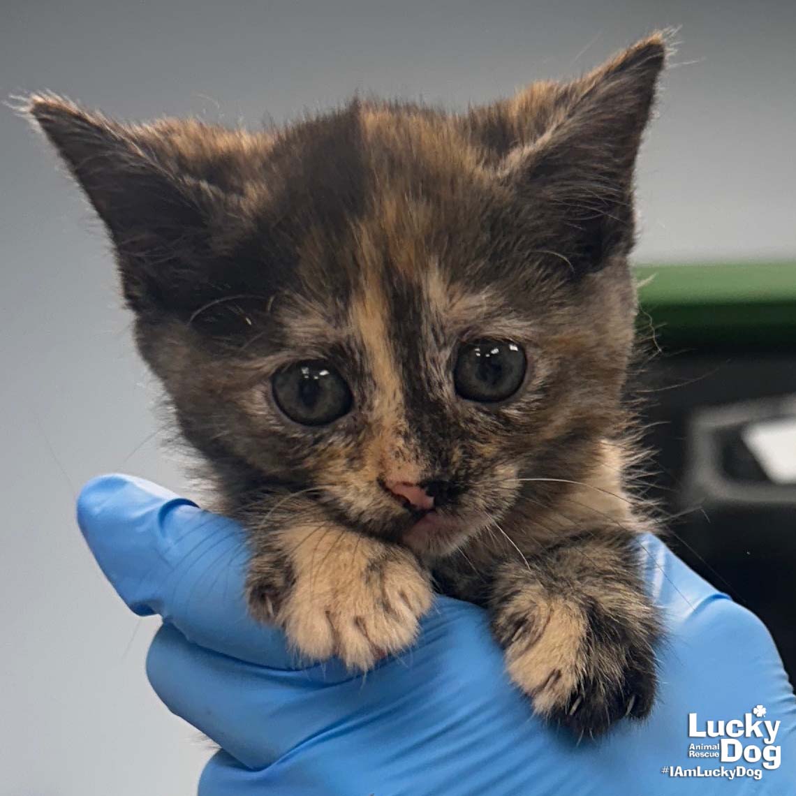 Please contact Lauren McCarty (laurenmc@luckydoganimalrescue.org) for more information about this pet.Sweet baby girl in search of her forever home!BRYNN NEEDS A FOREVER HOME! Name: Brynn Best Guess for Breed: Domestic Short Hair Age: 7 weeks as of 5/18/25 Estimated DOB: 3/18/25 SEX: Female Approximate Weight: 1lb 8oz as of 5/5/25 Coloring: Torti Type of Hair: Short Gets Along With: Because of her young age, Brynn will likely get along with other cats, dogs and kids with an acclimation period. We’re happy to help with tips and tricks! Litter: Brooke, Blaney, Brynn, Bailey, Blake Currently Living at: Shelter – coming to the DC area soon! I am Looking For: My loving forever family! Hi! I’m Brynn and I am a cute little kitten! I won’t ask for much- just some love, cuddles and lots of toys so I can run and play and be my kitten self. Two kittens are better than one – consider adopting my super cute siblings, too! What my Foster Says About Me: Coming soon! Kitten Vetting Requirements: Your kitten may not be fully vaccinated upon adoption. You will be responsible for providing whatever remaining vaccines are needed to complete the kitten vaccine series. Due to this kitten’s young age, she/he has not yet been spayed or neutered. As part of the adoption contract, it will be your responsibility, as the adopter, to ensure that this is done no later than 9/18/25. There are NO EXCEPTIONS and NO EXTENSIONS to this date. A non-refundable spay/neuter deposit will be collected if you would like Lucky Dog to pay for this animal to be spayed/neutered at one of our low-cost partner vets. TO ADOPT: The adoption fee for adult cats is $200 ($350 for two cats adopted together). The adoption fee for a kitten (under 7 months old) is $220 ($380 for two kittens adopted together).If you are interested in adopting, please complete the Adoption Questionnaire online at bit.ly/adoptaluckycat. Lucky Dog Animal Rescue does our best to provide accurate information about the cats we have for adoption. That said, we cannot make any guarantees about age, breed or temperament. Thank you for contacting Lucky Dog Animal Rescue and helping to save a life! Please visit us online at www.luckydoganimalrescue.org . BE A FOSTER!!! Fosters make it possible for Lucky Dog Animal Rescue to save and care for homeless and abandoned dogs! To learn about fostering, please contact fostering@luckydoganimalrescue.org BE A SPONSOR!!!! Sponsors help Lucky Dog support the many dogs we save. To learn more about sponsorship, please contact info@luckydoganimalrescue.org !