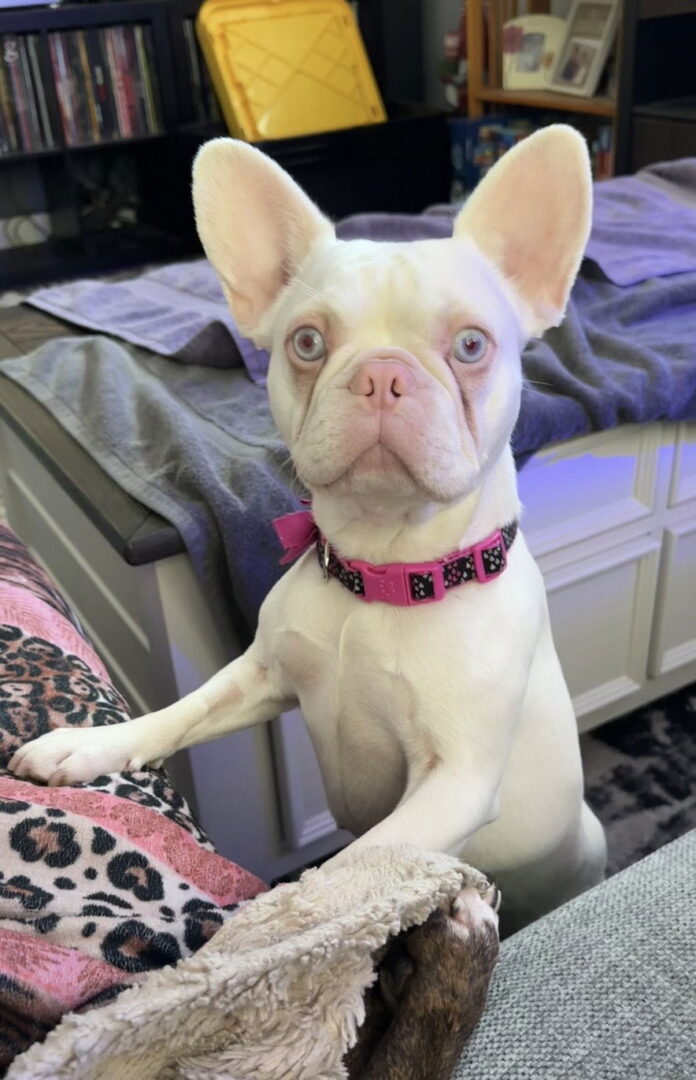 See Bubblegum’s HomepageGo to our official websiteYou can fill out an adoption application online on our official website. Thank you for stopping by to see me! Please fill out an application to set up a private meeting. Want to meet me? Come to the Underdog Headquarters (3345 Dakota Ave, St. Louis Park, 55416) on Sunday, February 15th from 12:00-1:00 pm. Please email inquiries@underdogrescuemn.com for questions regarding the dogs. Bubble Gum is a 21‑pound French Bulldog with a soft heart, a gentle spirit, and a personality that’s still blossoming. She’s a little shy in new environments and around new people, but once she feels safe, she becomes a sweet, cuddly shadow who follows her person everywhere. She’s independent at times and snuggly at others, and she’s just beginning to discover the joy of toys. Spiky balls are her current favorite — she loves to lie down and tug on them with her tiny bulldog determination. She’s also wonderfully quiet in her kennel, sleeping through the night and staying accident‑free. She’s kenneled during mealtimes because she has zero manners around delicious‑smelling food, but her food motivation will make training much easier. Bubble Gum is doing well with leash training and enjoys car rides once she settles in. She’s almost fully potty trained with a good schedule. She loves the freedom of a fenced yard and needs one in her forever home — she gets the zoomies when she comes inside from potty breaks and when she pops out of her kennel, and it’s pure joy to watch. She’s gentle, intelligent, skittish with loud commotion, and happiest in a calm home. She currently lives with five foster dog siblings and does well with them, though she may resource guard her person from larger dogs. She’s fed separately to avoid food guarding, but she’s shown no issues with treats. She prefers dogs her own size and would do well with or without another dog as long as her humans are home most of the time. Bubble Gum loves to burrow under blankets — though she’s hilariously bad at hiding, with a leg or her little bulldog butt usually sticking out. She also has a funny habit of slipping into the stand‑up shower and slowly peeking out from behind the curtain like she’s on a secret mission. Baths, however, are not her favorite, and she’ll protest the whole time, so her foster uses a cup to make it less overwhelming. She’s sweet, cuddly, goofy, and full of quiet charm. With patience, love, and a calm environment, Bubble Gum will continue to come out of her shell and become the affectionate, loyal companion she’s meant to be. Please note that some of our dogs are obtained from shelters, surrendered to our care, or released from breeders. Each animal's bio is based on our experience of the animal within our care, an educated guess based on physical characteristics, temperament and information shared. Each dog receives basic grooming when coming into rescue, but for some dogs they have not received grooming attention until recently and grooming may be required shortly after adoption. This will be at the adopter’s expense, so we encourage you to research the breed and be prepared for grooming expenses. Underdog cannot guarantee hypoallergenic or non-shedding qualities of any dogs in our rescue. Some of the animals come from situations where they are lacking experience in a home and confidence in humans. In turn, they require another companion dog and/or a fenced in yard in their forever home in order for them to feel safe. If you are interested in a particular dog whose bio states those needs and do not currently have them, please understand that your home might not be the right fit. Please use the filter on our Adoptable Dogs page to find the perfect match for your home. Bulldogs, pugs, and Boston terriers, Brussels Griffons, Pekingese and others are a member of the Brachycephalic breed and therefore have a host of health issues that may arise. Because these dogs are new into our rescue, health issues in the future may arise that we are not aware of. Some of these issues are allergies, eye issues, yeast infections, interdigital cysts, slipped disks in their back, breathing problems, among a host of others that can occur at any time or when seasons change. While breed experience is not required, we encourage you to thoroughly research the breed and its financial, medical, and environmental needs to be sure this breed is a good fit for you and your family. It is estimated that the average brachycephalic breed owner spends $2,000 per year on medical needs. In addition to other surgeries, this dog may have had surgery on their nares and soft palate to improve the quality of their breathing. This will be partially reflected within her adoption fee. These breeds are one of the most expensive dogs to own, maintain, and rescue and our adoption fees reflect such expenses. The application process for these breeds usually moves quite quickly as they are a popular breed, so we ask that adopters do research and be prepared for adoption at the time you submit your application. They are happy, goofy, playful characters and we are excited you are taking the first steps into rescuing one! This dog requires a separate application and an application fee. This fee must be paid within 24 hours or your application will be considered void. We will not review or contact applicants that have not completed the payment portion. This dog requires a Bulldog Application. All applications will be responded to within 5 business days, after receipt of the application fee. Please understand that paying the fee does not guarantee you will be approved to adopt the bulldog. Our goal is place bulldogs in homes that are suited for their individual needs. You may be willing and able to provide a great home, but if it doesn’t meet the specific needs of the bulldog, we will not approve your application. To learn more, visit https://underdogrescuemn.com/adoptionprocess/bulldogs