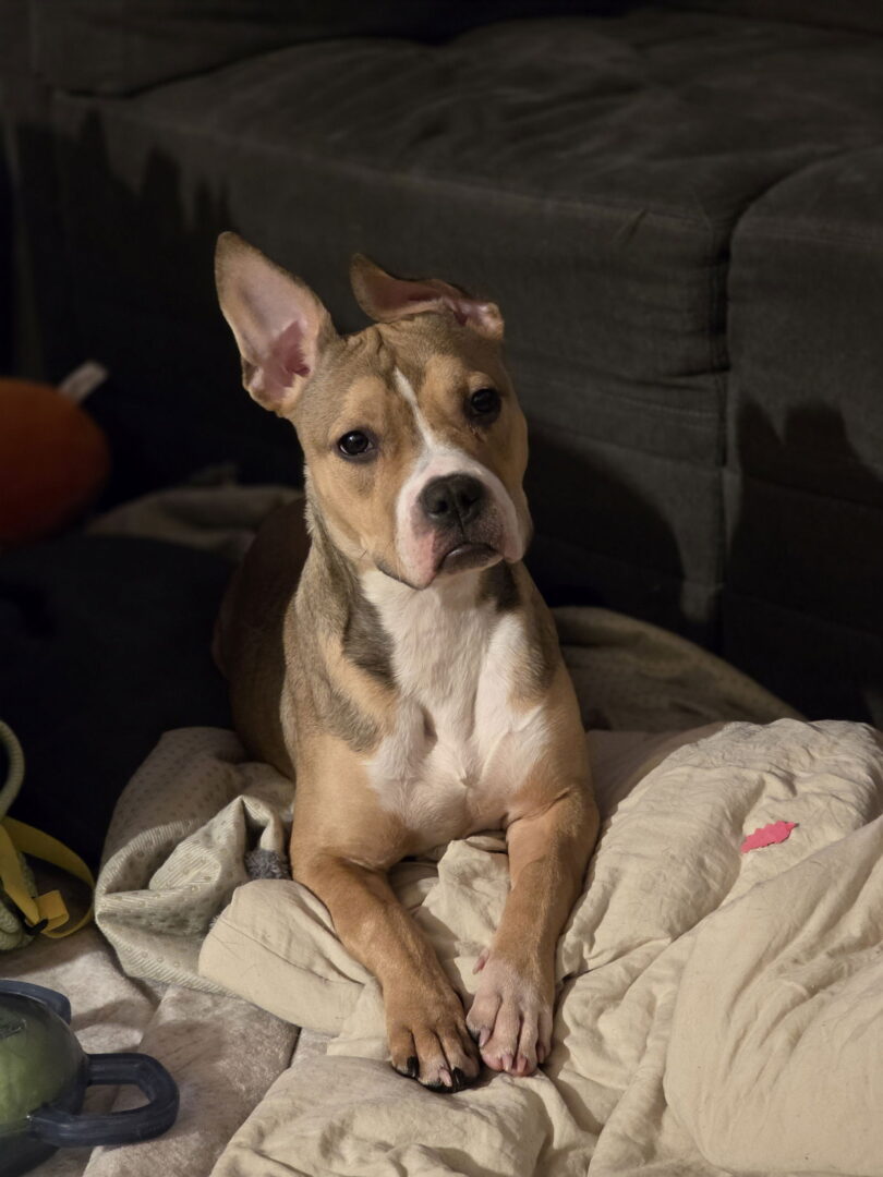 Wiggle wiggle wiggle—YAH! Bubbles has entered the chat This little lady will wiggle her way into your heart in approximately 3.2 seconds. Photos make her look bigger than she is—she’s really only about 30–35 lbs, but her ears showed up in HD Bubbles has some energizer-bunny moments, but plot twist: she actually has manners. Even when excited, she’s been shockingly respectful—no jumping, even on a small, excitable child (we were impressed too). She didn’t make a single peep in her kennel and communicates exclusively through enthusiastic booty wiggles when it’s playtime with her dog friends. ✨ Bubbles Recap (because we know you’re wondering): Age? The shelter didn’t say. Teeth? Pearly white. Guess? Somewhere between 8 months and “don’t ask me my age.” Breed? Records say pit mix… terrier… maybe a little ✨mystery✨ Honestly, she’s an adorable sampler platter of several dogs rolled into one. Whatever she is. However old she is. One thing is crystal clear—Bubbles is an absolute gem of a girl