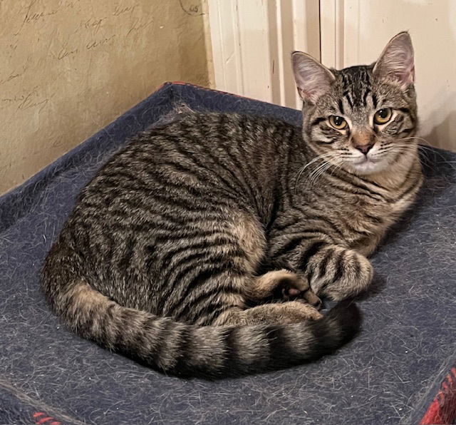 Bubbles, so cute (DOB ~4/3/25) is a precious, sweet, mellow spayed female. Combo tested negative for Leukemia/FIV, shots current, microchipped. Good with cats of all ages, can dog test. Her adoption fee is $75, or $100 if you add her sister Pixie. Kittens are wonderful in pairs, and tabbies are the BEST! 30-day money back satisfaction return policy. Application quickly processed! Email marla@adopt-a-kitty.org or text 251-404-0022 ADOPT-A-KITTY.ORG